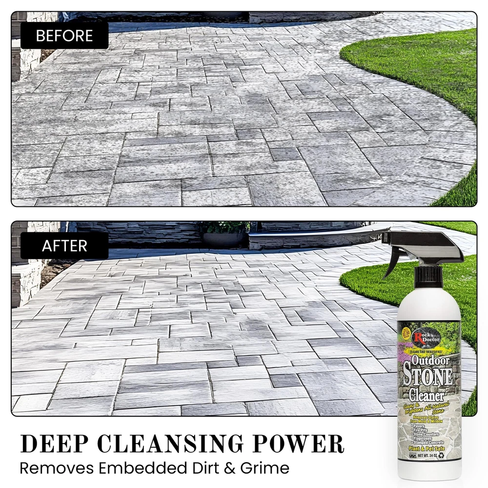 has been serving the marketplace for over 20 years with our fabulous array of stone care and kitchen cleaning products. Each product has been produced with you, The consumer, in mind. Our goal is to keep your kitchen and bath looking clean and shiny, just like it was brand new. We are proud to introduce our new outdoor stone cleaner. This product is specially formulated to clean and brighten all natural stone including pavers, fire pits, outdoor stone counters, flagstone and stamped concrete. If you have spent thousands of dollars in an outdoor kitchen you couldn't ask for a better product to protect that investment. Plant and pet safe. All Natural Stone Cleaner – Formulated with premium ingredients our stone cleaning spray works on a wide range of outdoor landscaping areas including stepstones, pavers, granite walkways, stamped concrete, and other areas. Removes Stains, Brightens Surfaces – Along with helping clean away dirt and grime our stone tile cleaner works deeply into the surfaces to help lift away stains and discoloration caused by mold and mildew for more effective and efficient support. Maintain a Vibrant Outdoor Landscape – Using our stone floor cleaner on your outdoor landscaping areas can help you create more beautiful curb appeal in the front of your home and a more welcoming, relaxing space in the backyard. Indoor and Outdoor Safe Use – Safe for all different types of stone our granite stone cleaner can be used for both indoor and outdoor projects, which makes it a great choice for both residential and commercial areas. Proudly Made in the USA – Like other products our versatile stone cleaning formula is made right here in the United States under strict guidelines to ensure it’s safe and effective. And all backed by support you can count on.