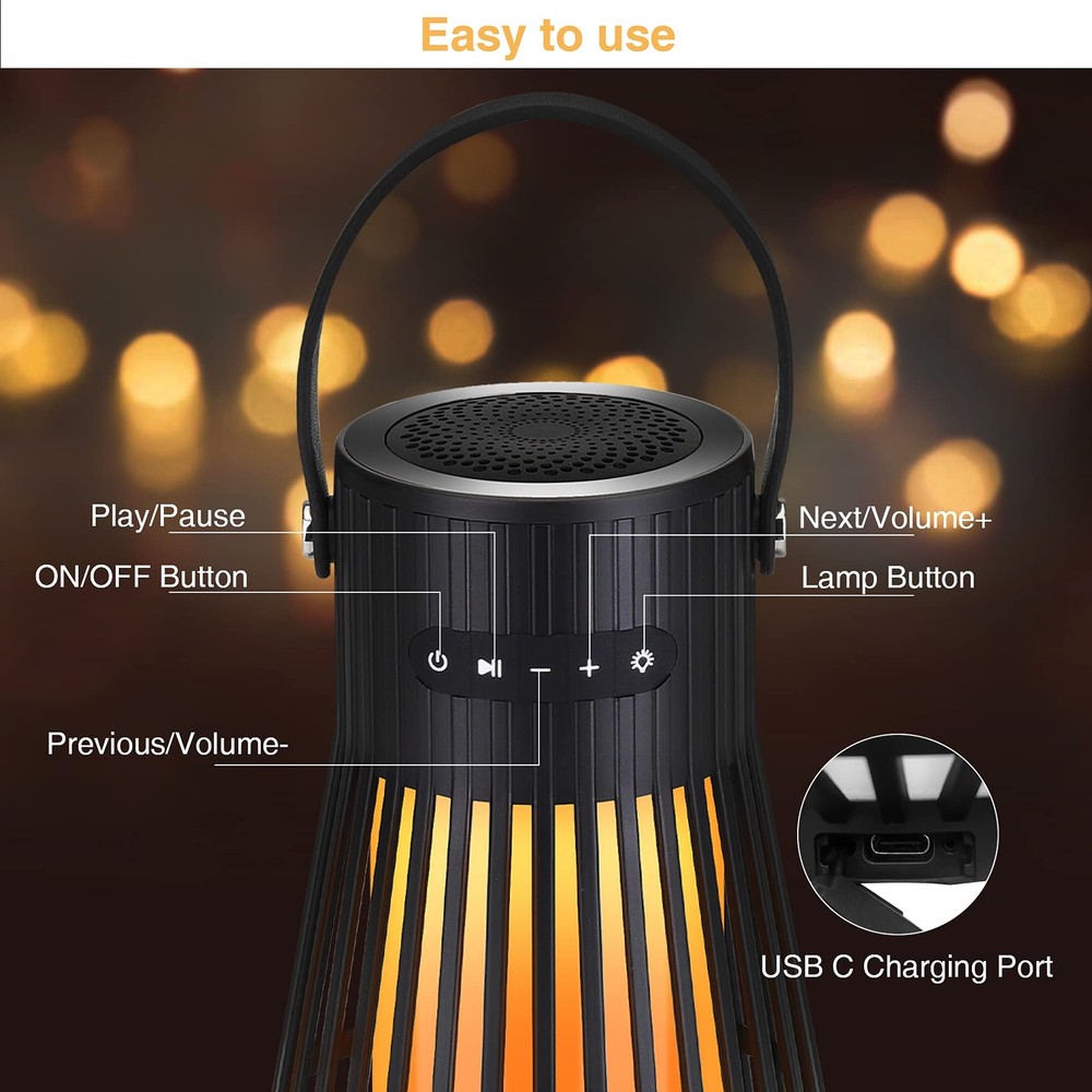 Outdoor Bluetooth Speaker with Flame Atmosphere, Led Waterproof Wireless Torch Speaker, Stereo Sound, Cool Gadgets for Camping, Yard, Party, Home, Decorations, Electronics Gifts for Men, Women, Dad 3 IN 1 flame ambiance speaker: The wireless LED speakers are not only speakers but also hanging lanterns, and night lights! Upgraded 120 LEDs torch flicker gorgeous dancing flames, not like other speakers only include 60,96 LEDs, All 120 LEDs flicker together with warm yellow lights, forming a stunning flame, mimic extremely realistic & natural dancing flames, combined with great audio function, to create a romantic atmosphere for your yard, garden, party, and camping. Long Service Time: Operated rechargeable battery, playtime is about 18 hours. Easy battery charge by USB cable with 4-5 hour full charge. IP65 waterproof protection safeguards against rain, dust, snow, and spills, therefore are applicable in the shower room, by the pool, or beach. 2 Modes of LED Lights: Constant light and flashing flame light modes. You can use it as a small speaker, as an outdoor torch, or the option as landscape decor to hang in the house, hang out a tree branch, in the back yard, by the pool. Cool electric gadgets for bedroom, and living room, home, as well as, house warming, gathering, picnic, bbq, wedding, outdoor travel etc. Dual Pairing Function for Multiple occasions: Premium Bluetooth 5.0 Version enables fast and stable connection to your mobile phone or device up to 66 feet away (no barriers). Equipped with a high-performance driver and a passive subwoofer, compatible with table any devices via Bluetooth such as pad, phones, and computer. Sync 2 speakers together easily, you'll enjoy superior loud stereo sound. Unique Gifts for Men Women: Cool Gadget for men, A great present for Thanksgiving Day, Christmas, New Year, Father's Day, Mother's Day, Easter Day, Halloween, Birthday, Anniversary, Wedding. The gift for yourself, lovers, family, friends, classmates, colleagues. We are so confident that you will fall in love with the outdoor flame speaker SHIPPING Domestic Buyers - We have confidence in our products, but if you are not fully satisfied please contact us within 30 days of purchase and you will get full refund. - We ship within 3 business days of payment, usually sooner - We offer FREE shipping on all orders! - We only ship to the lower 48 states, no APO/FPO addresses or PO Boxes allowed International buyers – please note: Import duties, taxes, and charges aren't included in the item price or postage cost. These charges are the buyer's responsibility. - Please check with your country's customs office to determine what these additional costs will be prior to bidding or buying. * Order Cancellation Policy ** You can return a product for up to 30 days from the date you purchased it. 1. The seller reserves the right to cancel the special case only due to eBay cancellation fee. 2. The decision of seller is the final. 3. The seller will respond to the cancellation request within 2 business days. Please wait for the result of cancellation. 4. In case the cancellation is not completed by some reasons, the buyer can follow the options below to get the refund. 4.1 The buyer can reject the item when it arrives. 4.2 The buyer can send the item back to the seller within 30 days If the buyer receives item (USA Shipment ONLY). The seller will provide the FREE return label to the buyer when the buyer opens " Return Item" case on eBay by using the reason as "Change my mind" ONLY. 5. When buyer has placed the order. The order will be processed and completed by automatic warehouse system within 5 minutes. In case that buyer sends the cancellation request after 5 minutes of placing the order, the request will be rejected. **Sending direct message to cancel the order is not allowed for every case.* Return Policy For the return case - If buyer would like to return the items for refund or replacement, please CONTACT SELLER to receive the free return label from seller. The refund or replacement will be processed with the tracking number of return label which is provided by seller only. The other ways of return which are not approved by seller will not be processed for the refund or replacement.