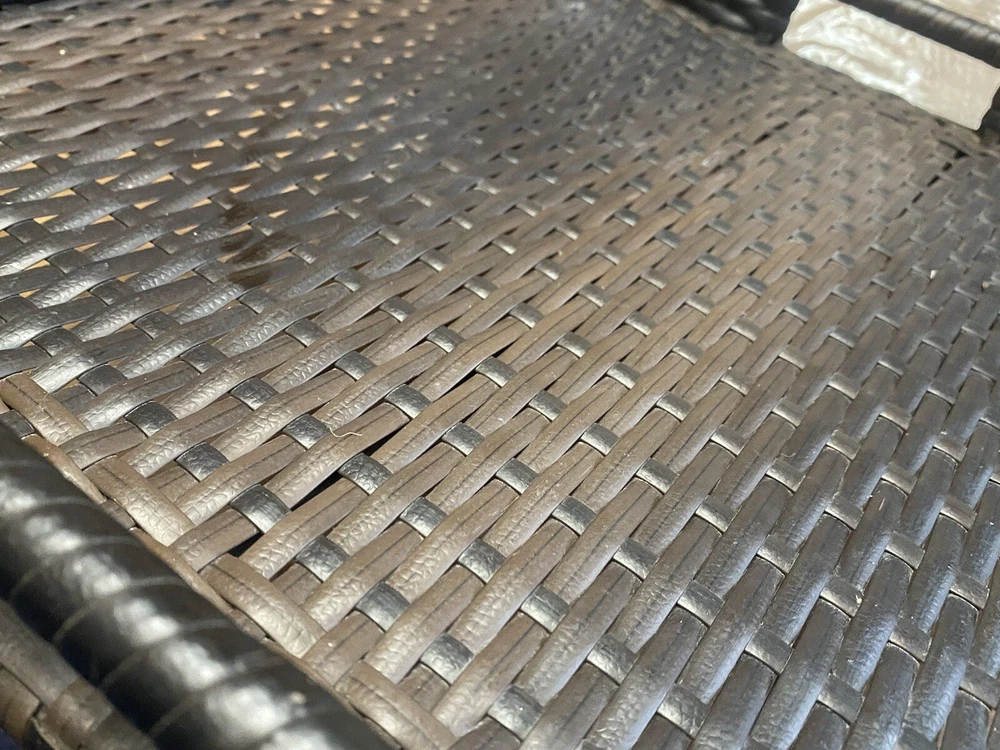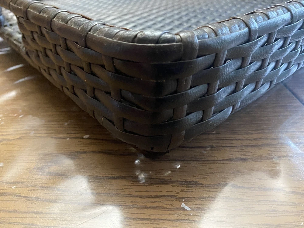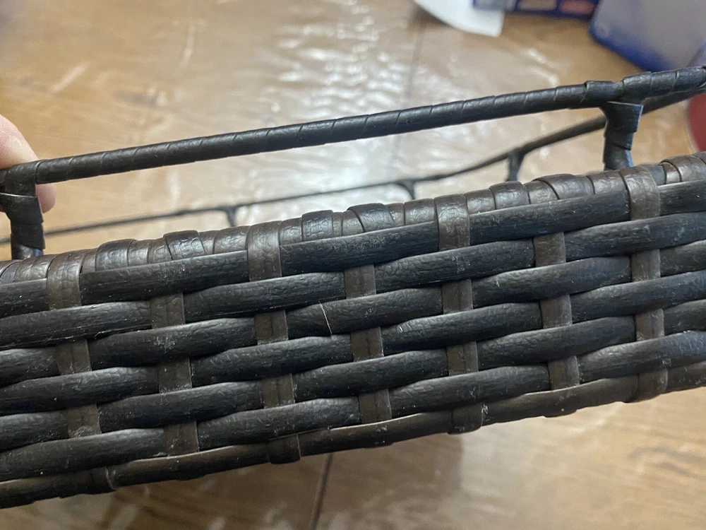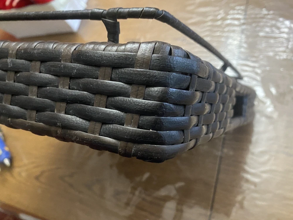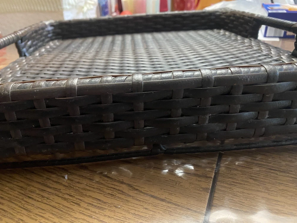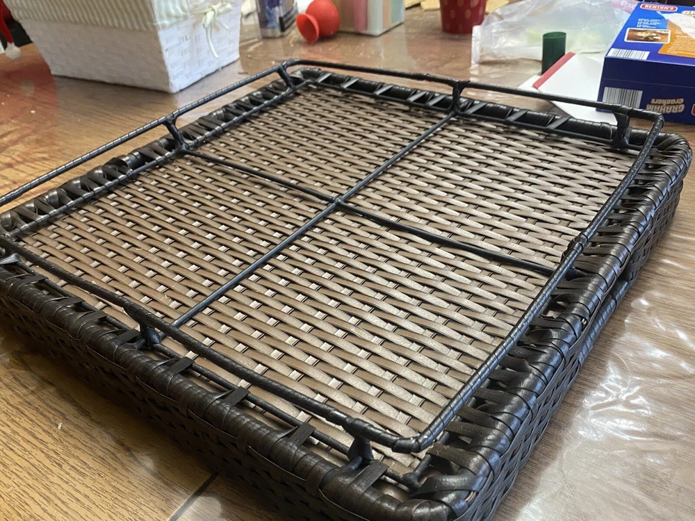 Outdoor/Indoor Hand Woven PE Rattan Large Serving Tray W/ Handles & Pedestal. Condition is Used. Shipped with USPS First Class.