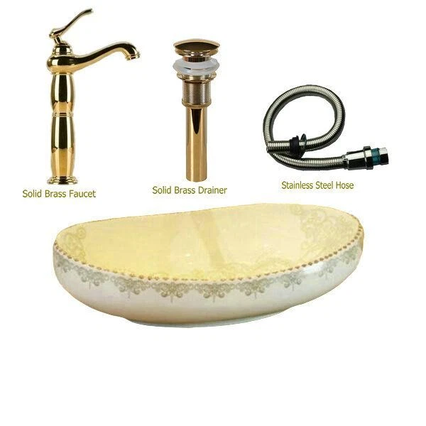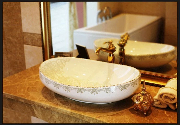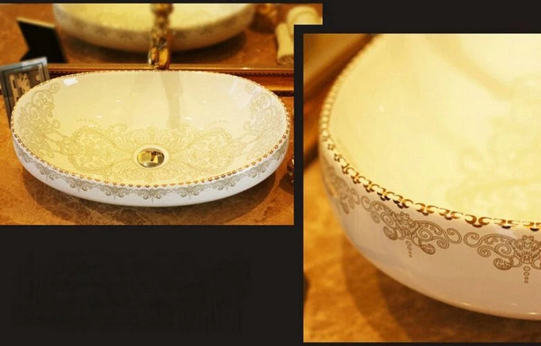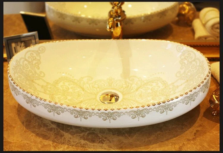 Oval Countertop Ceramic Bathroom Sink Wash Basins with Modern Artistic Style Set Processing: Glaze Spraying Special Application: Bathroom Sink Type: Countertop Sinks Capacity: 12L Faucet Mount: No Hole Basin Shape: Oval Material: Ceramic Brand Name: Unbranded Origin; Mainland China Length * Width: 3X42cm Height: 14-16cm Package Include : 1 x Countertop Sinks