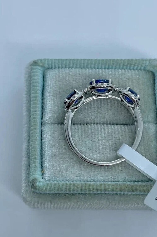 Emerald cut simulated blue sapphire ring in 14k white gold plated for women