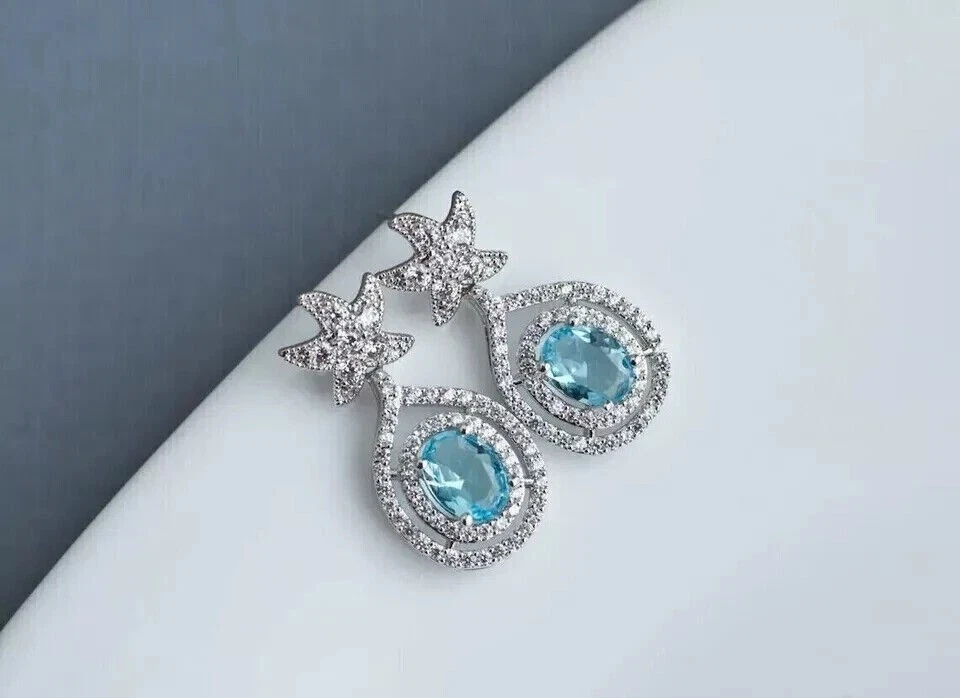Main Stone Creation: Simulated gtin13: Does Not Apply Theme: Beauty Metal Purity: 925 Era: Undated Main Stone Treatment: Not Enhanced Closure: Push Back Vintage: No Number of Gemstones: 2 Material: Stone, Metal, Gemstone Brand: sp_jewels Handmade: Yes Customized: Yes Wholesale: Yes Country/Region of Manufacture: India Color: White Style: Dangle/Drop Base Metal: White Gold Plated MPN: NA Ear Area: Lobe Type: Earrings Shape: Round Country of Origin: United States Occasion: Anniversary, Birthday, Christening, Christmas, Confirmation/Communion, Engagement, Graduation, Mother's Day, Valentine's Day, Wedding Cut Grade: Excellent Metal: Sterling Silver UPC: Does Not Apply Personalize: No Setting Style: Prong Main Stone Color: Blue Seller Warranty: Yes Main Stone: Simulated Topaz Main Stone Shape: Oval Antique: No Seller Notes: ““Freshly made on order with quality and buyer satisfaction. No old stocks.”” Signed: No Secondary Stone: Simulated Diamond Features: Engraved