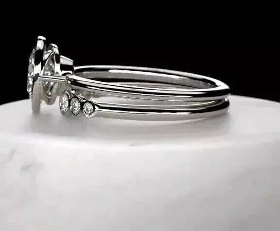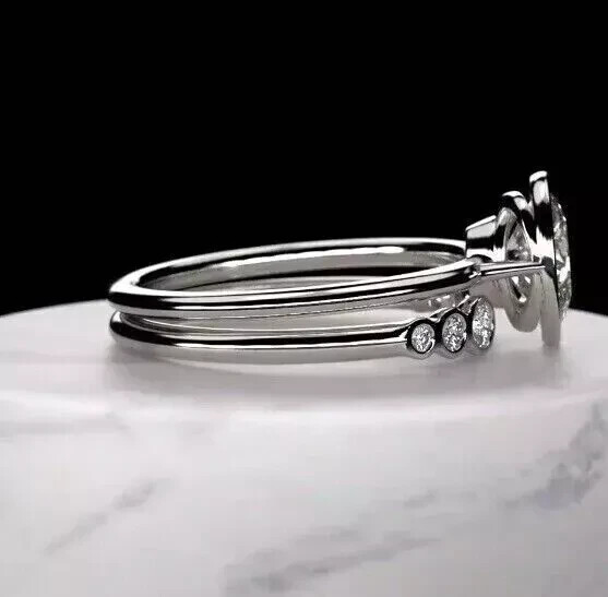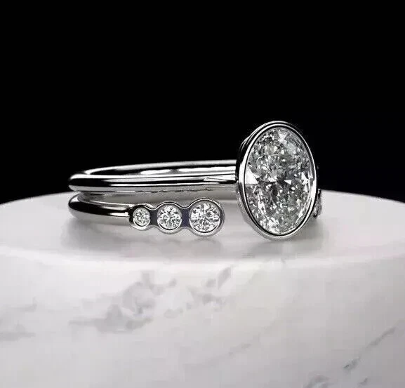 Oval Cut Simulated Diamond Bridal Wedding Ring Set in 14k White Gold Plated