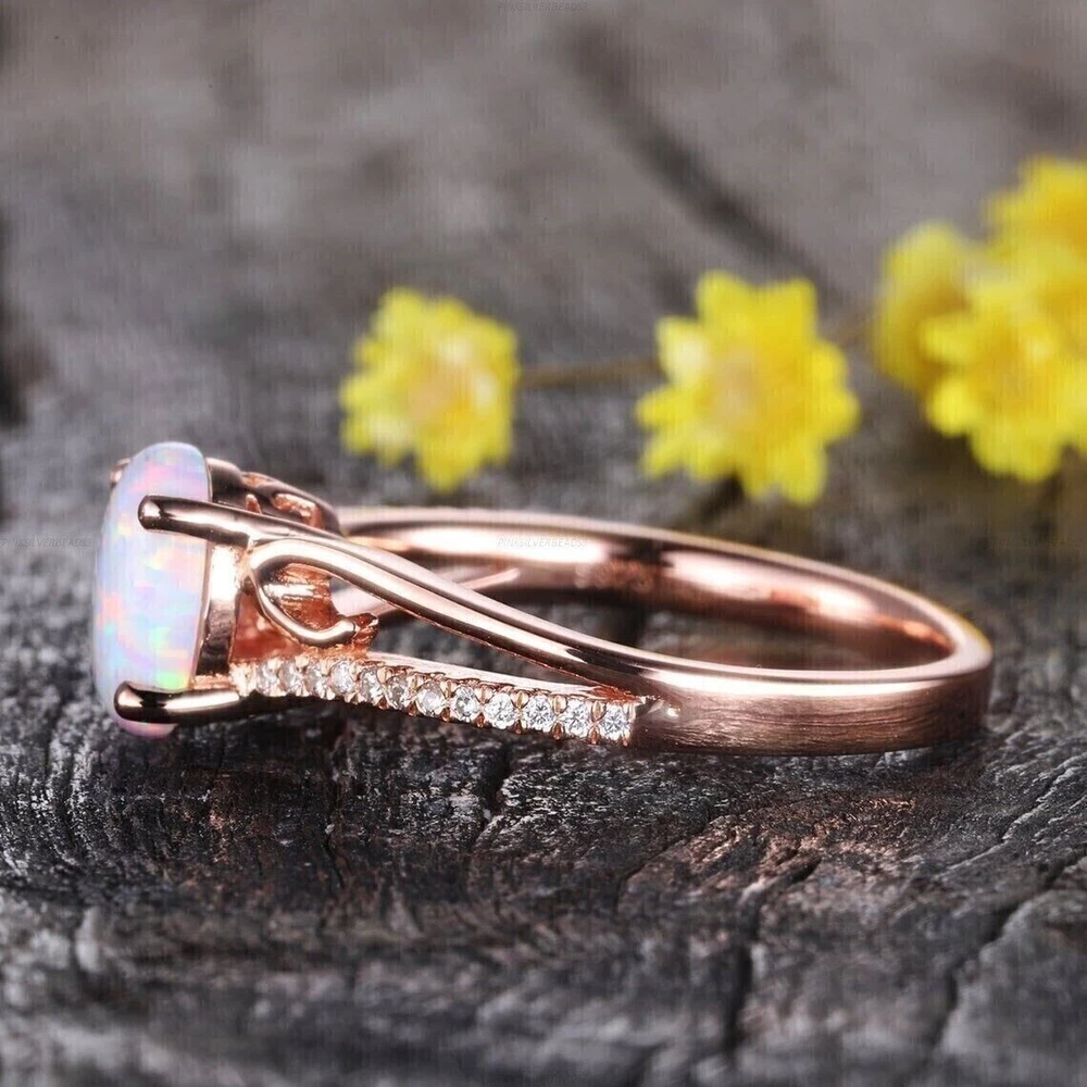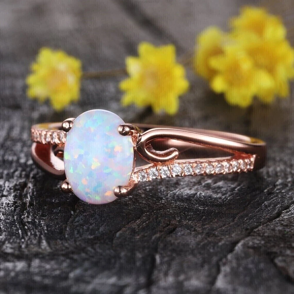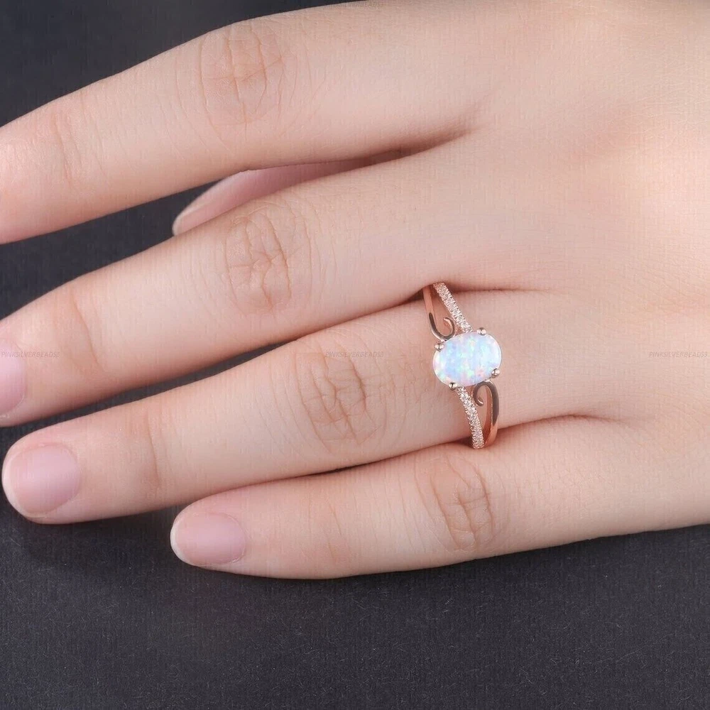 Wholesale: Yes Antique: No Country of Origin: Unknown Occasion: Anniversary, Birthday, Christmas, Engagement, Father's Day, Graduation, Mother's Day, Valentine's Day, Wedding Main Stone Color: White Seller Warranty: No Main Stone: Simulated Fire Opal Sizable: Yes Brand: sp_jewels Number of Gemstones: 01 Vintage: No UPC: Does Not Apply Setting Style: Prong Shape: Oval Type: Ring Seller Notes: ““Freshly made on order with quality and buyer satisfaction. No old stocks.”” Features: Engraved Main Stone Shape: Oval Color: Pink Secondary Stone: Simulated Diamond Metal: Sterling Silver Base Metal: Rose Gold Plated Style: Band, Eternity Main Stone Creation: Simulated Personalize: Yes gtin13: Does Not Apply Cut Grade: Excellent Material: Gemstone, Stone, metal Ring Size: All Size Available Country/Region of Manufacture: India Handmade: Yes Theme: Beauty Metal Purity: 925
