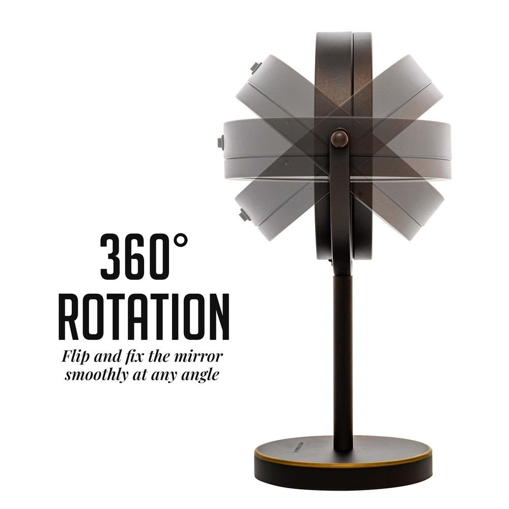 Ovente Lighted Vanity Mirror 6 Inch Table Top 1X 7X Magnification LED 360 Adjustable Double Sided Spinning Personal Makeup Stand Desk Bathroom Battery Powered Circle Large Antique Bronze MLT60ABZ1X7X Product Details Color: Antique Bronze Brand: OVENTE MPN: MLT60ABZ1X7X UPC: 814667022813 EAN: 0814667022813 Brand: OVENTE Room Type: Bathroom Shape: Round Product Dimensions: 7"L x 1"W Frame Material: Stainless Steel Brand: OVENTE Room Type: Bathroom Shape: Round Product Dimensions: 7"L x 1"W Frame Material: Stainless Steel Style: 7X Magnification Mounting Type: Tabletop Mount Finish Type: Antique Bronze Special Feature: Dual Sided, Fog Free, Dimmable, Lighted, Magnifying Color: Antique Bronze Theme: Antique Specific Uses For Product: Makeup Number of Pieces: 1 Number of Items: 1 Material: Glass, Iron Frame Type: Framed Item Weight: 1.5 Pounds Assembly Required: Yes Frame Color: Antique Bronze Magnification Maximum: 7 Inches Manufacturer: OVENTE UPC: 814667022813 Global Trade Identification Number: 13 Item Weight: 1.5 pounds Country of Origin: China Item model number: MLT60ABZ1X7X Is Discontinued By Manufacturer: No Finish types: Antique Bronze Warranty Description: Us-based customer service: ovente warranties that the product shall be free from defects in material & workmanship under normal use & conditions, for 1 year from the original purchase date. Batteries required: Yes Import: Imported Dual-sided & 7x Magnifying This dual-sided 360 swivel design luxury mirror features 1x & 7x magnifications. The 1x provides a view of your face all at once and 7x for precision, because every detail counts. Distortion Free View Look 10 inches away for a distortion free view. This means this mirror will not stretch or shrink in its reflection. Cool Tone LED Ring Light This mirror is equipped with a Cool Tone LED light which simulates natural lighting. With LED lights, there is no need to worry about replacing light bulbs because they will last the entire lifetime of the mirror. Battery Operated - This mirror is powered by 4 AAA batteries (not included). Introducing the revolutionary MLT60 Series Mirrors—a game-changer for your grooming rituals! More than just a practical accessory, this tabletop makeup mirror serves as a stunning focal point that effortlessly complements various decor themes, from vintage charm to Hollywood glamour. Elevate the atmosphere of your office, bathroom, bedroom, or vanity space with its elegant design, infusing a touch of sophistication wherever it's placed. Engineered for convenience, ensuring optimal visibility for all your grooming needs. With its hands-free design, multitasking becomes effortless whether you're at home, in a hotel, at the dentist's office, or even in the powder room. Bid farewell to cluttered countertops—this tabletop gem offers a sleek solution, keeping your space tidy and organized. Experience unparalleled clarity with the magnified vanity mirror, enabling you to attend to every detail of your beauty routine with precision. Whether sculpting eyebrows or refining facial hair, this mirror guarantees impeccable results every time. Emitting positive vibes, it enhances the ambiance of any room, catering to individuals of all ages, from kids to adults. Its ability to magnify and showcase your accessories adds an extra layer of luxury to your grooming experience. Take your pick from four deluxe finishes— Matte Black, Antique Bronze, Nickel Brushed, and Polished Chrome—in size 6 inches with 1X/ 7X magnification. Transform your grooming haven with OVENTE’s MLT60 Series Tabletop Cosmetic Makeup Mirror—a perfect blend of style and functionality that elevates your space to new heights!