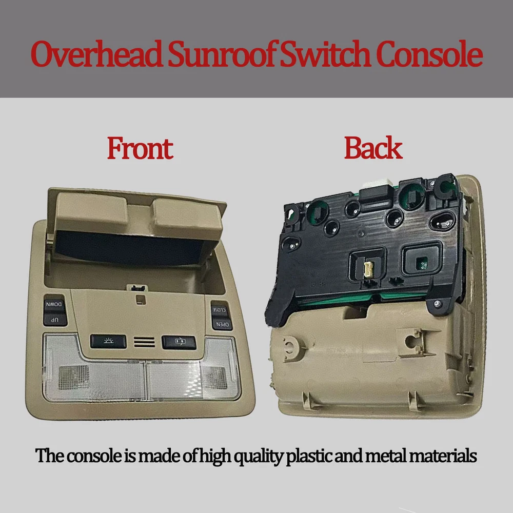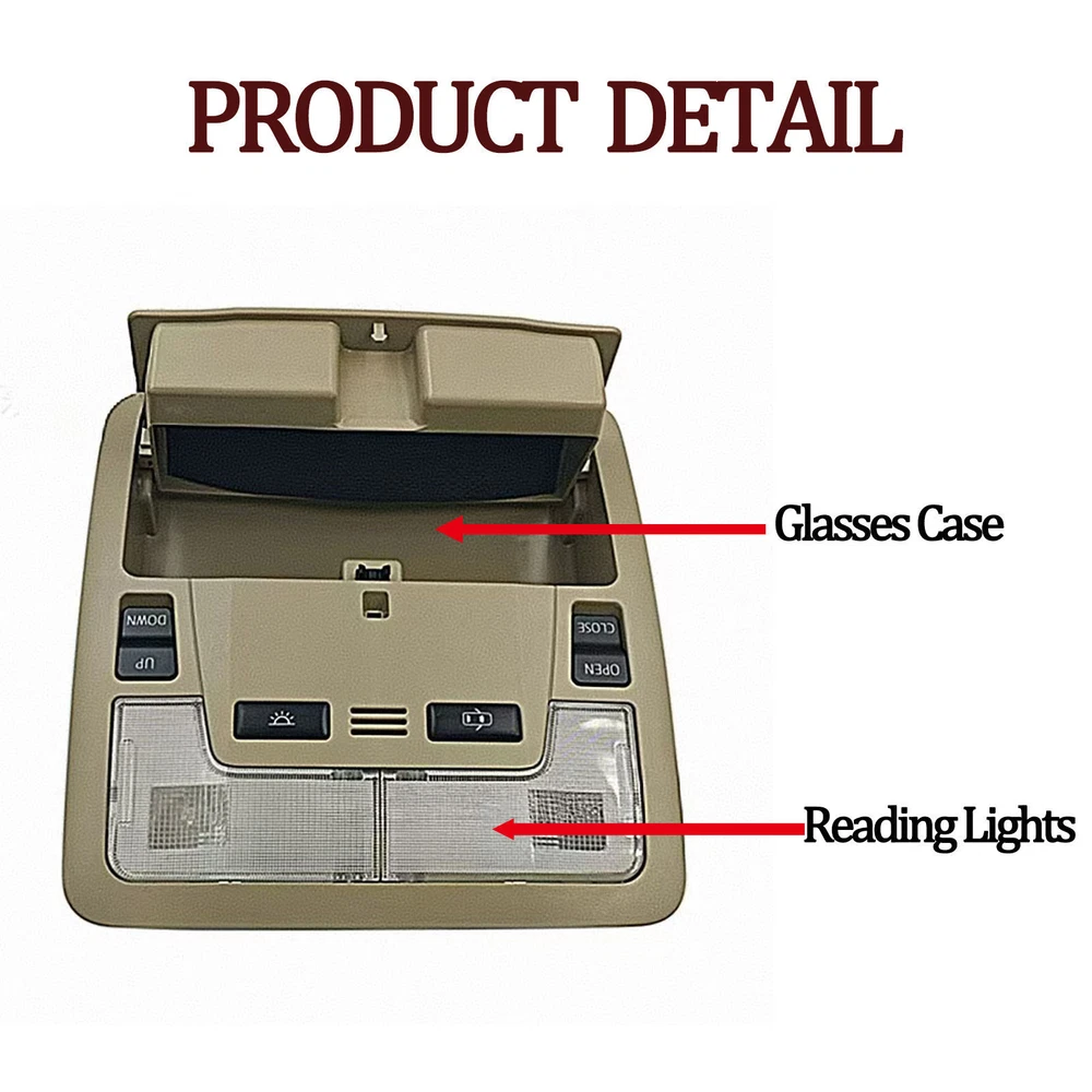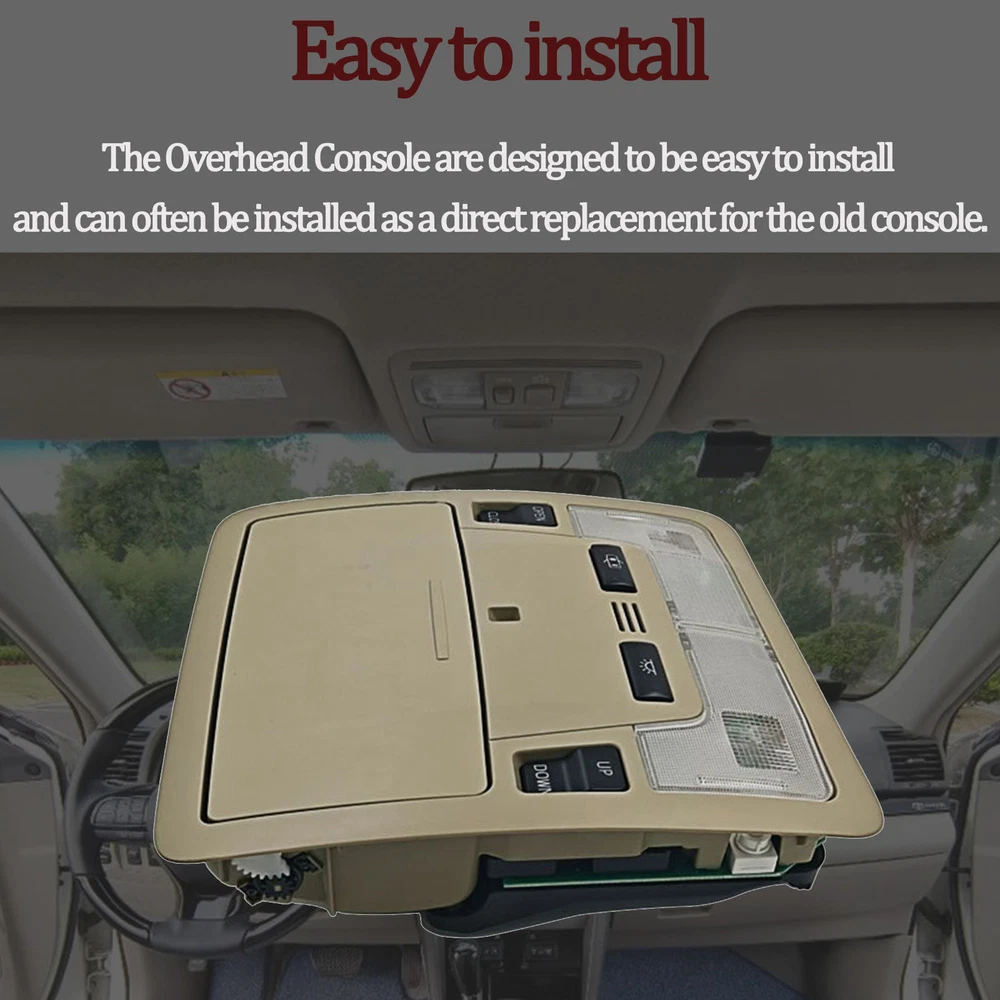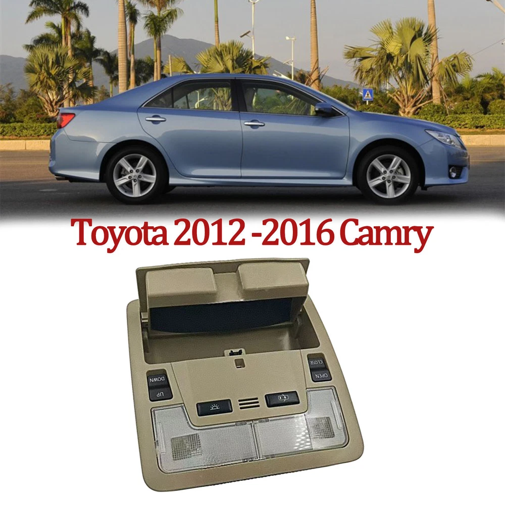 Specification Name: Overhead Console Material: ABS+Metal Colours: Creamywhite Installation: Original replacement Suitable for: for Toyota Camry 2012 2013 2014 2015 2016 Features:Experience the convenience of an overhead console for your vehicle with the overhead console. This overhead console comes equipped with a sunroof switch, as well as a reading lamp, offering the perfect blend of practicality and convenience. Upgrade your vehicle with this overhead console today for a safer and smarter driving experience. Package Include: 1x Overhead Console Notes. 1.Please make sure your car model is compatible with this product to ensure a perfect match. 2.If you are not sure about the item, please contact us before purchase to avoid unnecessary returns, thanks!