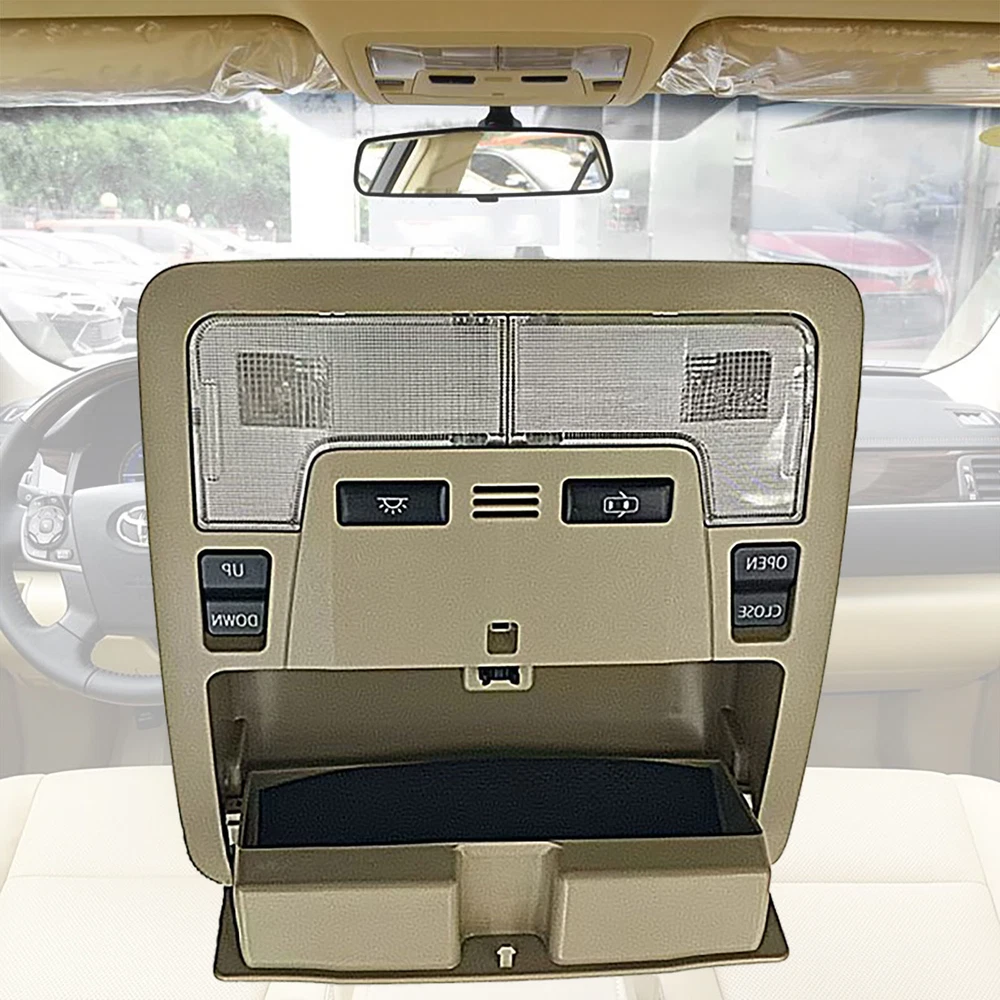 Specification Name:Overhead Console Material:ABS+Metal Colours: creamywhite Installation: Original replacement Suitable for: for Toyota Camry 2012-2016 Features: The car sunroof console is integrated in the centre of the roof and is easy to reach. The console includes several buttons for opening, closing and adjusting the sunroof. The buttons are spring-loaded or push-type for easy operation and convenient opening and closing. The eyeglass case has a moderate capacity and is suitable for most common eyeglasses. Reading light has a separate on/off switch. Easy to install Package Include. 1x Overhead Console Notes. 1.Please make sure your car model is compatible with this product to ensure a perfect match. 2.If you are not sure about the item, please contact us before purchase to avoid unnecessary returns, thanks!