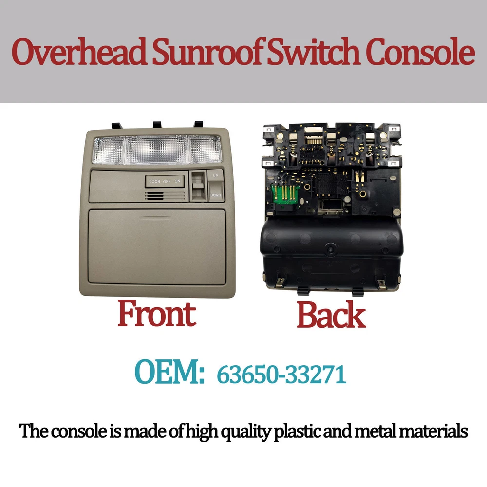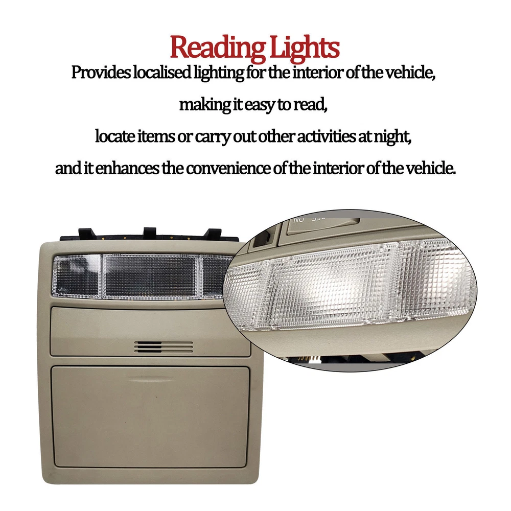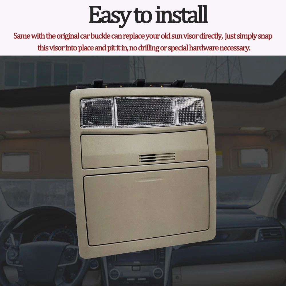 Specification Name: Overhead Console Material: ABS+Metal Colours: Creamywhite Installation: Original replacement Suitable for: for Toyota Camry 2007 2008 2009 2010 2011 Features:Experience the convenience of an overhead console for your vehicle with the overhead console. This overhead console comes equipped with a sunroof switch, as well as a reading lamp, offering the perfect blend of practicality and convenience. Upgrade your vehicle with this overhead console today for a safer and smarter driving experience. Package Include: 1x Overhead Console Notes. 1.Please make sure your car model is compatible with this product to ensure a perfect match. 2.If you are not sure about the item, please contact us before purchase to avoid unnecessary returns, thanks!