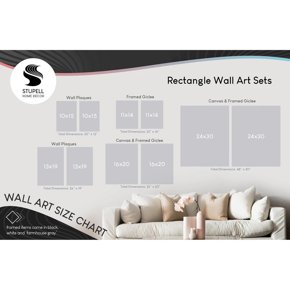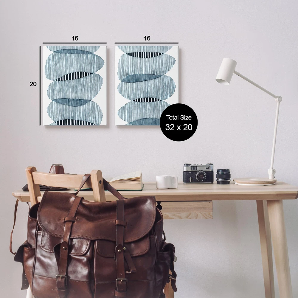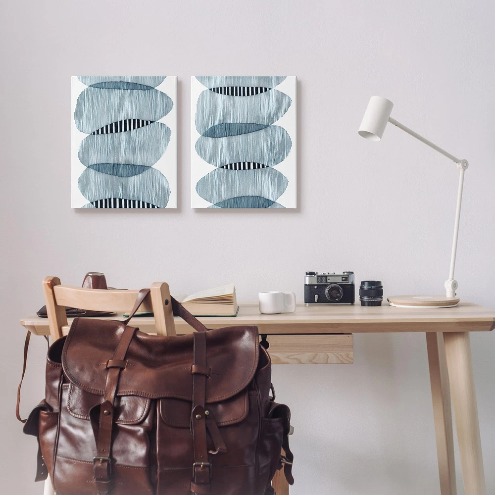 Fill any space with Stupell Wall Art Sets. We create our stretched canvas to the highest standards. Using only the highest quality inks and canvas on Mimaki printers, we hand-cut and stretch each piece over a 1.5-inch thick wooden frame for hanging. As a result, the art comes ready to hang on the sturdy ledge with no installation required. Wall Art is made in the USA. Piece Canvas Set Sizes Include Standard: 2pc, Each is 16 x 1.5 x 20 Oversized: 2pc, Each is 24 x 1.5 x 30 Wall Art is Ready to Hang with Hardware Free Hanging. No installation required. For Easy Set Up Lean or Layer Artwork on Shelf or Against Wall. Our stretched canvas is created with the highest standards. We use only the highest quality inks and canvas on our in house Mimaki printers, and then hand cut and stretch each piece over a 1.5 inch thick wooden frame for hanging. Made In USA. Artwork Relates To: Abstract, Modern, Geometric, Shapes Design by Nikki Galapon