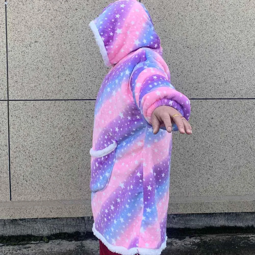 FREE SHIPPING 30 DAYS RETURN EASY PAYMENT Oversized Blanket Hoodie Men Women Gray Big Warm Blanket Hoodie Sweatshirt with Size Measurement Diagram Tips: Clothes Length is from the shoulders to the bottom. Suggest Adults Height 160-180cm Manual measurement may result in 1-3 cm errors, please understand. Thanks ! Features: 1. Fabric:Flannel+Polar Fleece Made of ultra-soft flannel fleece and lined with warming, Sherpa comfort 2. Hooded loose hoodied, easy to wear and off, you can wear the clothes in reverse; 3. The front pockets is cute, the hands can extend into the pockets to keep warm. 4. The cuffs have windproof and warm ribs, which makes the clothes more functional; 5. Normal washing:Machine washable dry hand wash; 6. Package: The package may be squeezed during packing or transportation, especially when purchasing multiple items, open and hang for some time after receiving the goods, the clothes will be restored to the original state. Real photos taken by mobile phone REVIEWS The product came very well packaged. I'm very happy. thank you for everything. Seller strongly recommended. This is great! I definitely recommend! Product looks amazing Delivery was fast. Excellent seller, great communication. I advise everyone