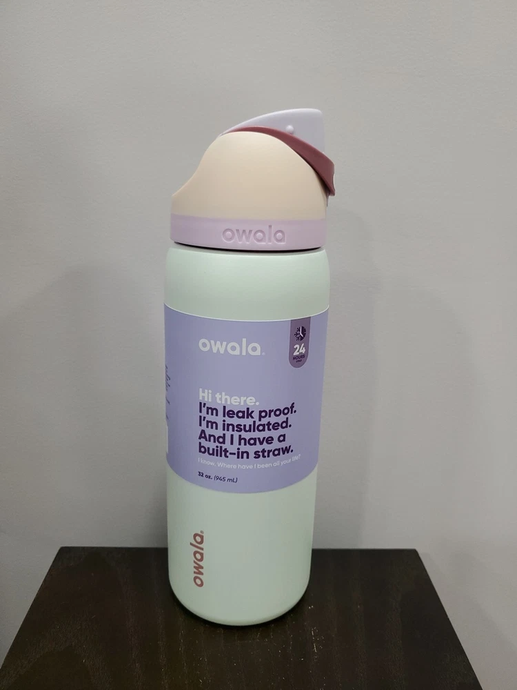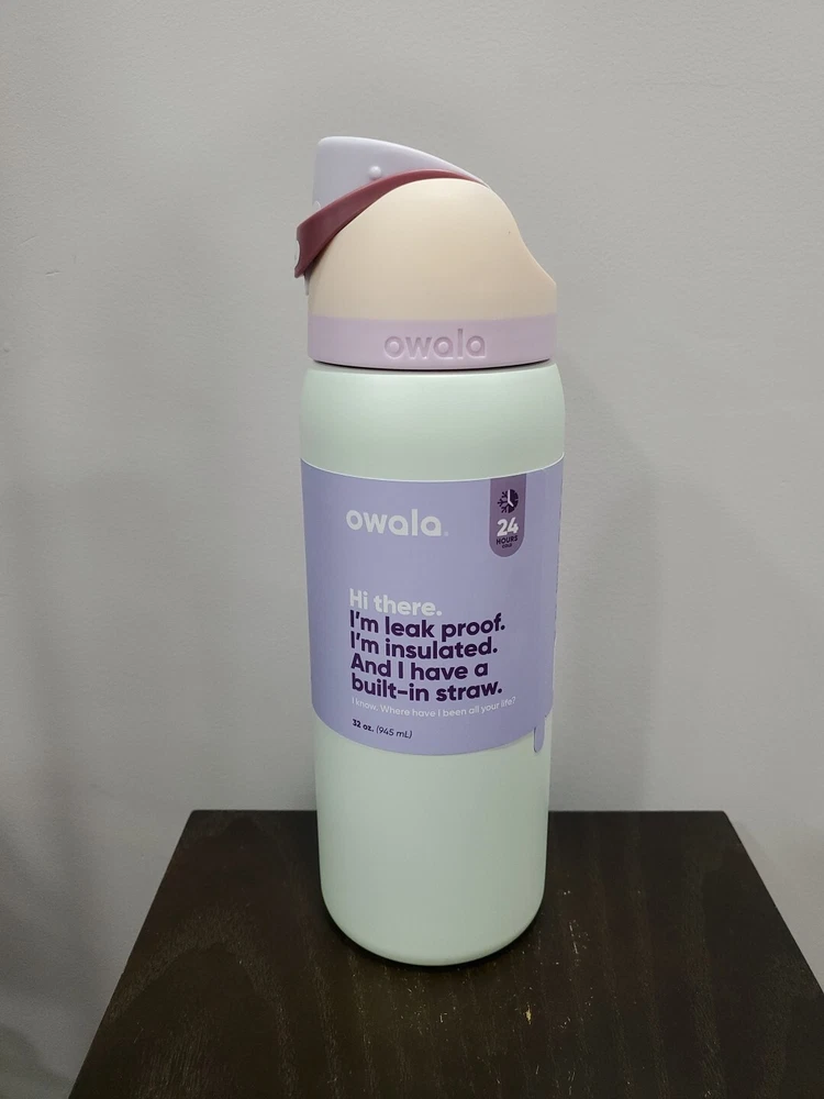 Owala FreeSip Stainless Steel Water Bottle 32oz Color: Coastal Mist New. No obvious cosmetic concern. Posted on other selling platforms. I will be unlikely to respond to messages that are like or similar to, "lowest amount you'll take??" - add to cart, watchlist, as I'm always sending out offers! About this item: Patented FreeSip spout designed for either sipping upright through the built-in straw or tilting back to swig from the spout opening Protective push-to-open lid keeps spout clean; convenient carry loop doubles as a lock Double-wall insulation keeps drinks cold for up to 24 hours; wide opening for cleaning and adding ice; cup holder-friendly base BPA and phthalate-free; hand wash cup, dishwasher-safe lid; not for use with hot liquids A note about shipping: I do bundle shipping if multiple items are purchased. At checkout you may pay as if each item is being shipped individually. Once all items have been packaged and the shipping label has been purchased, excess paid will be refunded! Also - I have a few different shipping options available on each listing so at checkout you can choose which option seems the most palatable for your particular situation!
