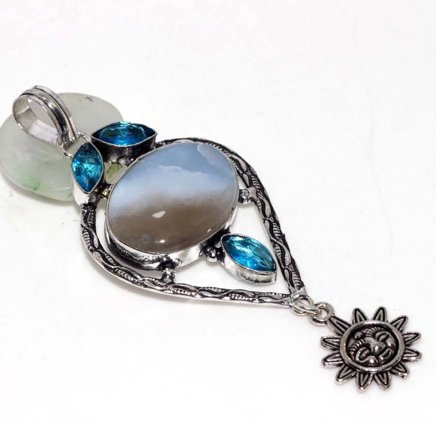 Owhyee Blue Opal Blue Topaz Gemstone Pendant 3.3" Aesthetic Jewellery JW