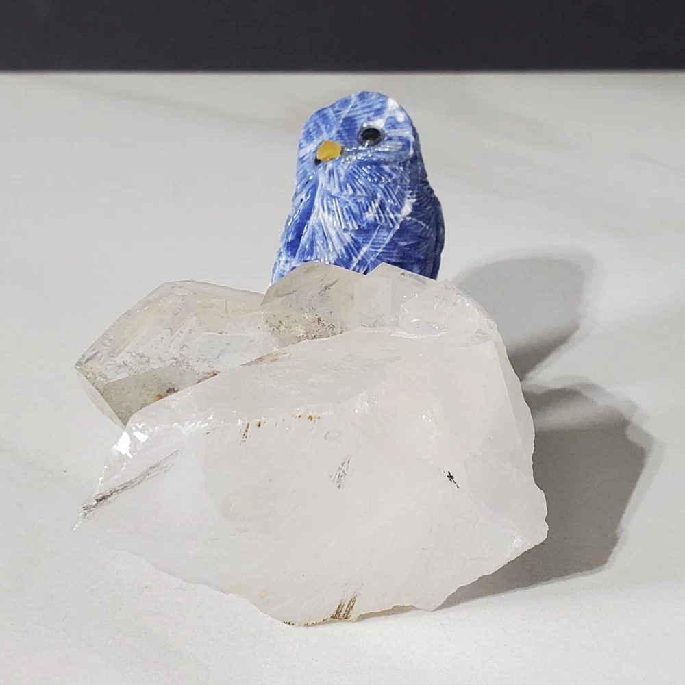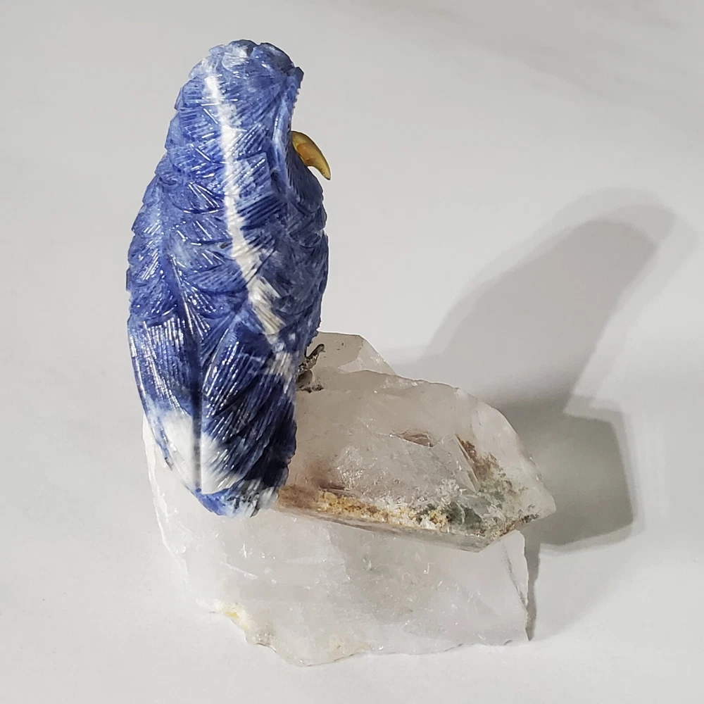Owl Figurine Natural Sodalite Carved on Clear Quartz Point with Inclusions In good condition No chips Please view all photos for condition and measurements Thank you for viewing our products. PRODUCT SOLD AS IS. Please Message With Questions Prior To Purchase. If you have an issue with any of our items please reach out to us prior to contacting eBay. Thanks! Please note: We do sell new and used items. Our used items are pre-owned / pre-loved & may show signs of wear. Please view all photos for details, size, & imperfections as they are a form of the descriptions in addition to what is stated in the description section. We will do my best to inspect each item to find the best quality items possible. We do not include/replace batteries in any of our items unless they have been supplied by the manufacture and are in new unused condition. If an item is sent to you NEW / SEALED and you open it or remove the tags, it is NO LONGER ELIGIBLE FOR RETURN. Opened items / Removed tags - Means the item is NO LONGER in its original state and can no longer be sold as NEW. -Thank you for your understanding We are often asked about shipping cost. We are excited about your purchase and take pride in your package arriving to you undamaged . We wrap and cushion all necessary items prior to shipping which adds weight to your package. Unfortunately, this is not optional. Thank you for your understanding. We do not accept returns or issue refunds however in the event we do accept your return or issue a refund we do not reimburse your original shipping fee. Due to how eBay handles international shipping we do not accept any international returns. Thanks again!