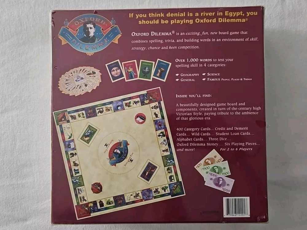 Get ready for a challenging and exciting game of chance with the Oxford Dilemma board game. This game is perfect for 2 players or more, and is recommended for ages 12 and up. The game includes a game board, cards, and other materials, all of which are made by RU Game Ltd in the United States. The game's theme is strategy, and it is a great addition to any board game collection. The Oxford Dilemma is of contemporary manufacture, and perfect for players aged 12-16 years and 17 years & up. The game is a must-have for anyone who loves a good game of chance.