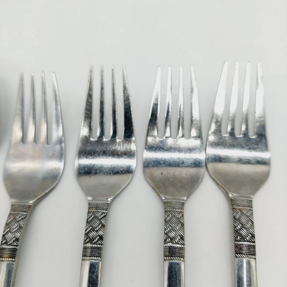 Oxford Hall Stainless Steel Korea Weave Pattern 1 Spoon 4 Forks Lot Of 5 READ