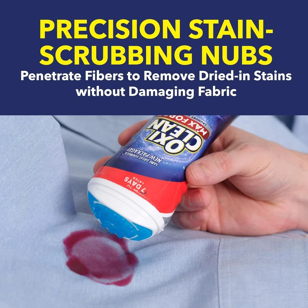 Brand :OxiClean Item Form: Gel Scent: Fragrance free Specific Uses For Product; Stain Remover Material Feature :Concentrated About this item One 6.2 fl oz OxiClean Max Force Laundry Stain Remover Gel Stick tackles your stubborn and dried-in laundry stains OxiClean Max Force gel lets you pretreat stains now, then wash up to seven days later for cleaning that fits your schedule Powerful laundry spot remover for oil, grease, makeup, blood, grass, soil, clay, ink, food, drinks, and kid and baby stains Laundry stain remover for clothes is color safe, dye free, chlorine free, and safe to use on all machine-washable whites and colored fabrics, even kid and baby clothes Rub gel directly on stains until saturated, let stand five minutes or up to seven days, then wash with detergent in warmest water garment will accept; to get clothes extra clean, add OxiClean Versatile Stain Remover powder to washer per label directions