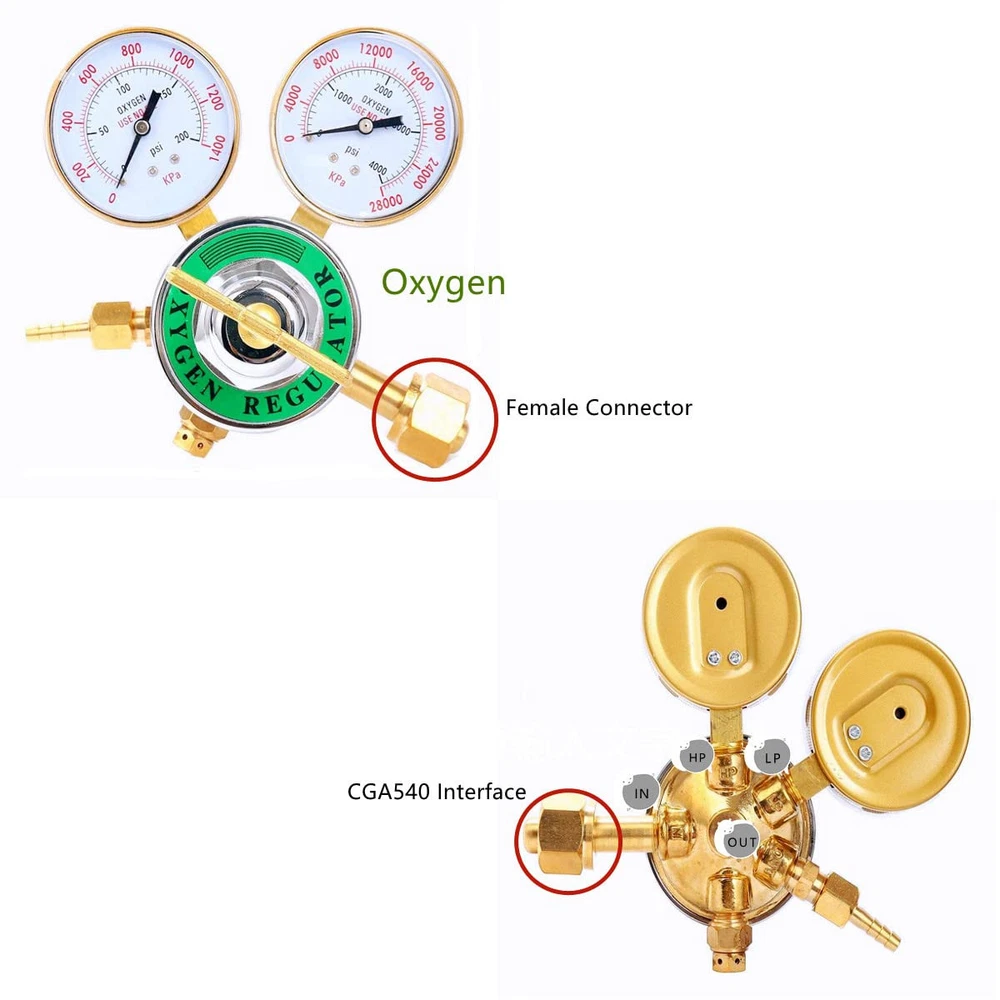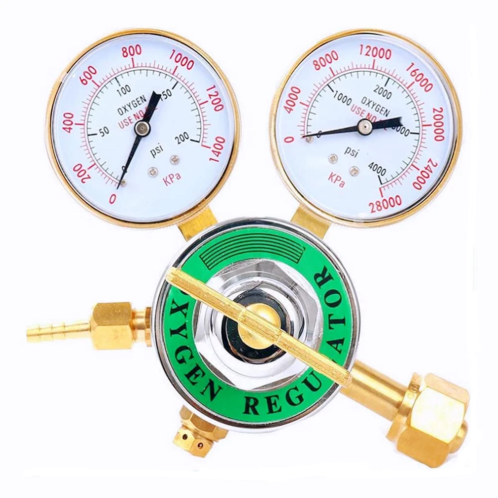 đ ăSpecificationsăOutlet 0-200 PSI, Inlet 0-4000 PSI. Inlet thread: CGA540 female, Units of measurement: KPA and PSI đ ăFeaturesăThis handy oxygen regulator easily replaces the worn out regulator in your welding kit! An ideal item to have on hand for any welder đ ăHigh QualityăOxygen Regulator includes 2-5/8 in. diameter gauges and valve to displays accurate pressure đ ăMaterialăThe main body is made of high quality brass forging and pressing. The upper cover is made of durable material, and the surface is chrome plated, which has long service life, durability and reliable use đ ăWide UseăDesigned for heavy duty applications where high outlet pressure is required.Such as Cutting and welding
