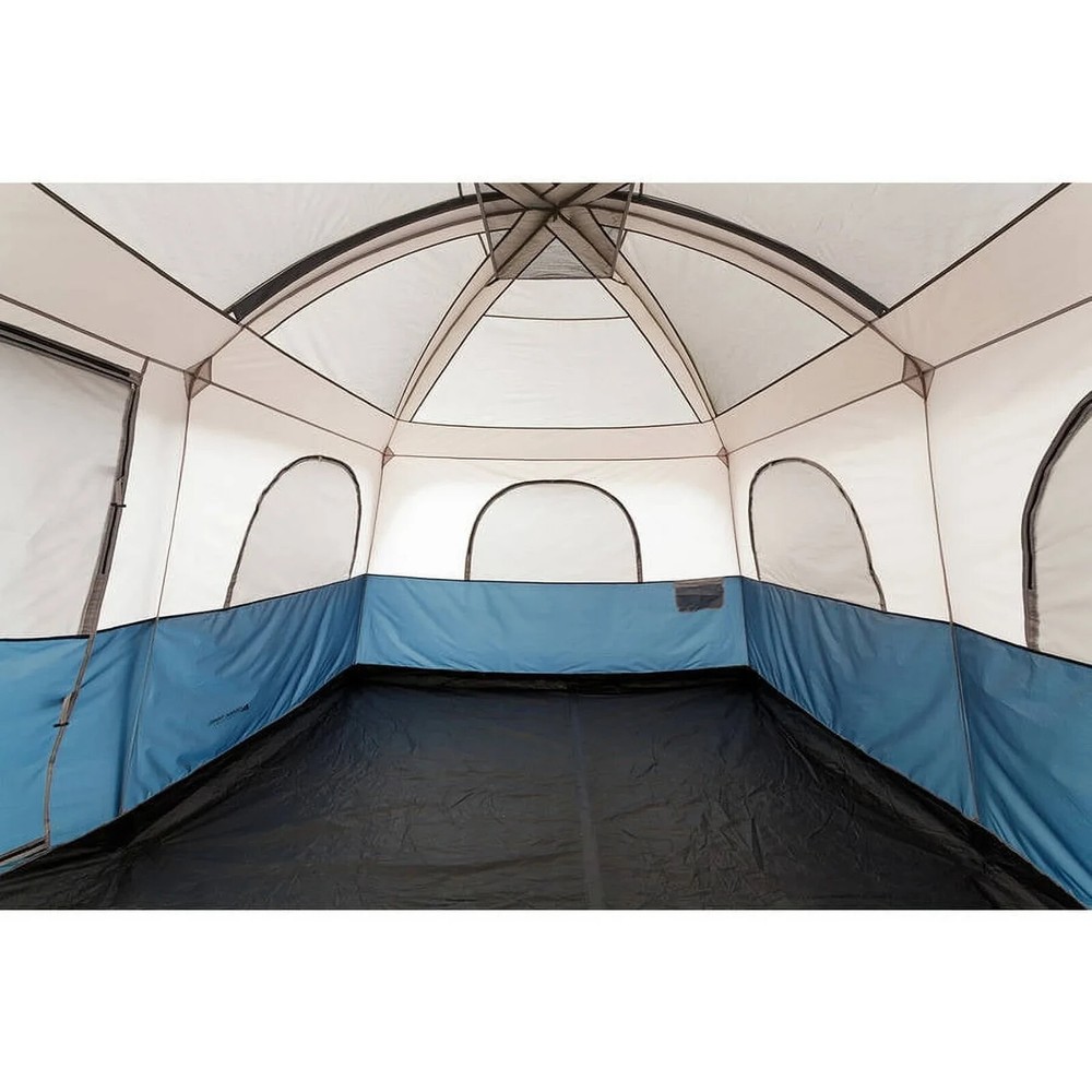 Product details The Ozark Trail 14' x 10' Family Cabin Tent sleeps 10, providing ample space to enjoy a comfortable camping trip. The 2-room setup features a room divider to separate the living and sleeping areas and has large windows on all sides. This Ozark Trail family cabin tent has a center height of 86 inches that leaves plenty of room to move around. It includes a gear loft, 14 steel tent stakes and electrical cord access for added convenience. This cabin camping tent is fully taped with factory-sealed seams for lasting rain protection as well. It also has a factory-welded 6" tub floor. The Ozark Trail 14' x 10' Family Cabin Tent sleeps 10 people comfortably, along with two Queen-size air beds or 10 sleeping bags. It comes with a carry bag for easy transport and storage when it's not in use. This camping necessity is ideal for families or groups who enjoy spending time outdoors without giving up the comforts of home. Fits 2 Queen-sized airbeds or 10 campers in sleeping bags Fully taped, factory-sealed seams provide dry zone camping with leak protection Factory-welded 6" tub floor Electrical cord access for added convenience Rainfly included for long lasting rain protection Carry bag included for easy storage and transportation Gear loft included to help keep all your gear and accessories organized 14 tent stakes made of steel included Ozark Trail family cabin tent provides outdoor shelter for multiple people Perfect tent to take with you on your next outdoor adventure with friends and family