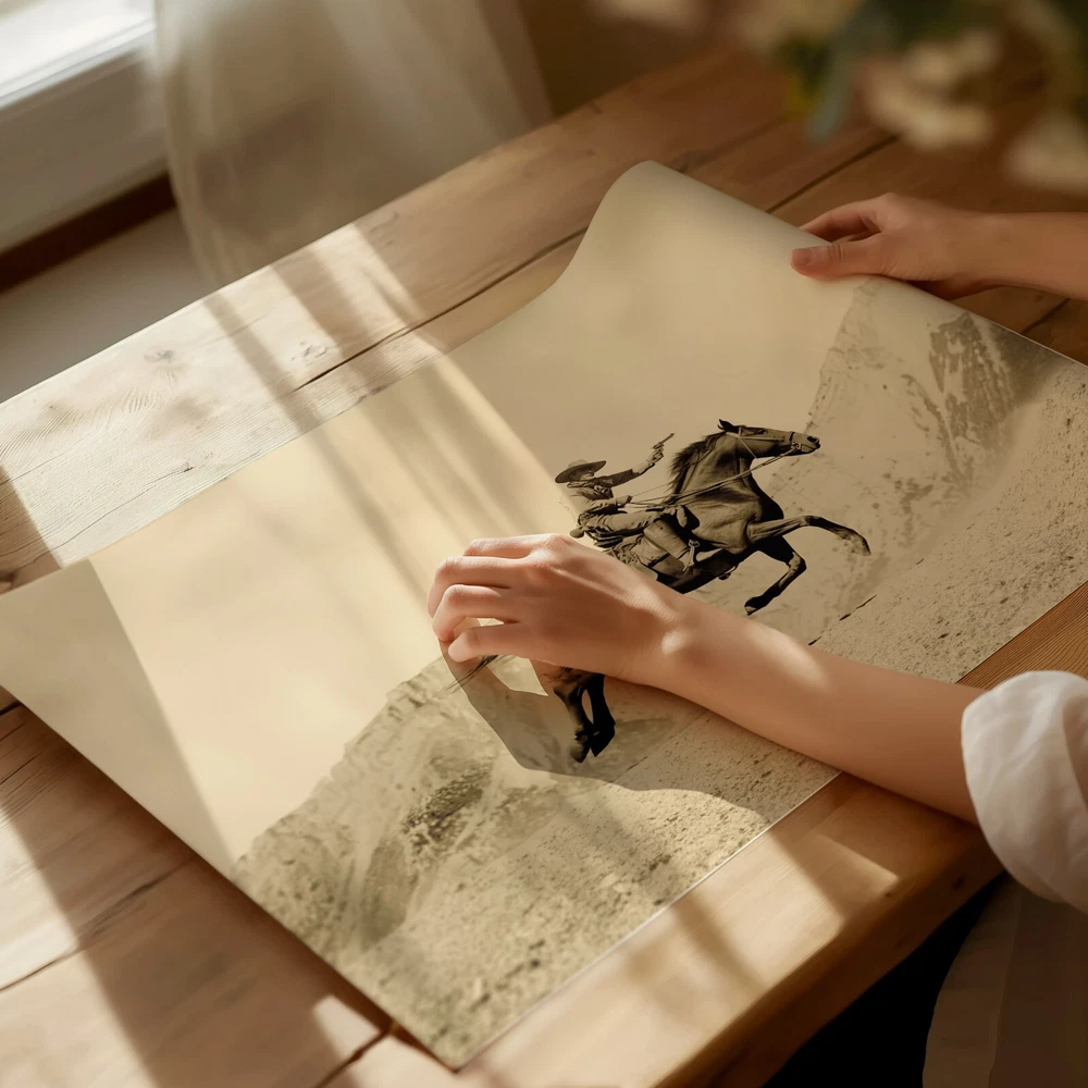 Free eBay listing template designed by dewiso.com Vintage Cowboy Action Poster - Western Shooting Scene Wall Art - 12X16/16X20/18X24/24X36 About This Item: Dynamic Western Scene: Capture the excitement of the Wild West with our Vintage Cowboy Action Poster. This sepia tone wall art print features a thrilling scene of a cowboy in mid-action, shooting his pistol while riding his horse across the rugged landscape. Perfect for Western enthusiasts and those who appreciate the adventurous spirit of the American frontier, this poster adds a touch of dynamic energy to any rustic home decor. High-Quality Print: Our Vintage Cowboy Action Poster is meticulously reproduced on Epson luster paper 260gsm, ensuring exceptional clarity and durability. The high-quality paper enhances the rich textures and subtle sepia tones of the original photograph, providing a stunning and long-lasting print. This robust material guarantees that your poster will remain in pristine condition, preserving its classic beauty for years to come. Versatile Size Options: Available in four substantial sizes, this poster is designed to fit various spaces and preferences. Whether you need a striking centerpiece for a large wall or a refined accent for a smaller area, these size options provide flexibility to suit your decor needs. Both sizes maintain the same high level of detail and quality, making this Western action scene come to life in any setting. Secure Packaging: We take great care in packaging your Vintage Cowboy Action Poster to ensure it arrives in perfect condition. Each poster is meticulously rolled and placed in a sturdy cardboard tube, protecting it from any damage during transit. This thoughtful packaging reflects our commitment to delivering a high-quality product and a satisfying customer experience, so you can enjoy your new artwork immediately upon arrival. Perfect Gift Idea: This Vintage Cowboy Action Poster makes an excellent gift for Western enthusiasts, history buffs, and anyone with a passion for rustic and nostalgic decor. Its captivating design and iconic subject matter make it a versatile and thoughtful gift for birthdays, holidays, housewarmings, or any special occasion. Share the timeless beauty and adventurous spirit of the Wild West with someone special and elevate their home decor. Features and further details ? Printed on premium luster paper using specially formulated Archival Pigment inks that increase fade resistance and really capture the detail of the print. ? The standard sizes of this poster makes it easy to find a suitable frame. ? Simply select a beautiful frame to match with your decor and you have the perfect wall art accessory in your home. ? All of our prints are created by a process called Giclée (a French word for "spray'). The inks used in this process have a much higher resistance to fading than normal printing inks, which makes this kind of printing particularly suitable for prints being used in wall decor. ? We use the best quality printing paper - Epson Premium Lustre Paper and inks. The specially coated surface of this paper enhances the colour depth and vibrancy of each print. It also comes with a guarantee of lifetime fade resistance. PLEASE NOTE: This listing is for the poster only, does not include the frame. Our Categories Contact us We can be contacted at any time through eBay messages if you have any questions, comments or product requests. We will respond to you within 24 hours and do our best to help you out! We encourage our customers to contact us with any questions or concerns! We'd like to be sure you are completely satisfied with your purchase. Payment We accept PayPal, GooglePay, VISA & Credit/Debit Cards Shipping All orders are shipped with 24 hours of the order being placed. Orders to the UK are shipped via Royal Mail; EU orders are shipped via DHL and orders to the US and Canada are shipped with USPS or Canada Post - tracking information will be sent with the shipping notification. Disclaimer These products come as posters only - no frames are included.