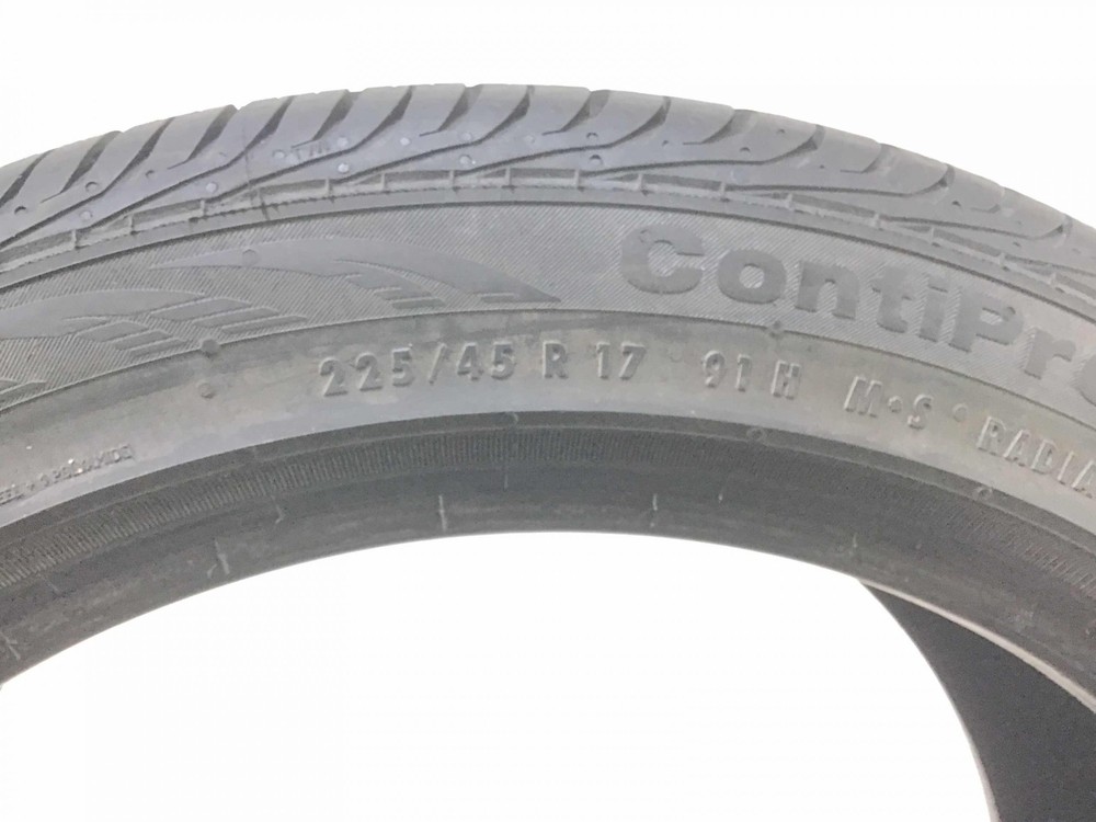 itemTitle Champtires is not an authorized Continental dealer. The manufacturer warranty does not apply. P225/45R17 Continental ContiProContact SSR MOE 91 H Used 9/32nds About Champtires Since 2009, Champtires has sold new and the best used tires to drivers across the U.S. Champtires fully inspects – visually and by air-testing – all tires. Some tires have been repaired using an industry-standard plug-patch combination that will last the lifetime of the tire. Champtires will not repair a tire’s sidewall. Tires cannot be returned for having repairs. If you have a question about whether a tire has been repaired or not, send us a message on eBay prior to making a purchase. Tread depths are accurately measured. If you have questions about manufacture dates (DOTs), please also send us a message before placing an order. About our Tires Champtires sources only the highest quality used tires. All tires go through a three-step inspection process, which involves a visual inspection, air-testing and a final check before shipping. Tread depths are accurately measured. Some tires have been repaired using an industry-standard plug-patch combination that will last the lifetime of the tire. Champtires will not repair a tire’s sidewall. Tires cannot be returned for having repairs. If you have a question about whether a tire has been repaired or not, please send us a message. If you have a questions about a tire’s manufacture date, please send us a message as we would be happy to provide the DOT. Customer Service If you have any questions about our tires, including repair status or manufacture date, please send us a message through eBay. All messages will be answered within 24 hours, most often within a few hours. Shipping Details We ship using FedEx Ground to the continental 48 states. Your tires will leave our facilities within one business day. Return Policy Tires can be returned within 30 days if they were inaccurately described or damaged. Please send a message with any return requests. Disclaimer Limitation of Damages: Under no circumstances, including negligence, shall Champtires be liable for any direct, indirect, incidental, special, punitive, or consequential damages that may result from the use or inability to use any product(s) purchased from Champtires, including but not limited to flaws/defects, or any other failure or inadequacy related to the product(s). Disclaimer of Warranties: The product(s) purchased from Champtires are provided “as is,” with all faults, and without warranties of any kind, either express or implied, including but not limited to implied warranties of merchantability and/or fitness for a particular purpose. Pure Pass Through: Champtires is a pure pass through retailer of products, and such products are provided “as is”, with all faults. Assumption of Risk: The product(s) purchased from Champtires are provided “as is,” with all faults. Purchaser acknowledges the risks associated with purchasing a product “as is” and assumes any and all such risks.
