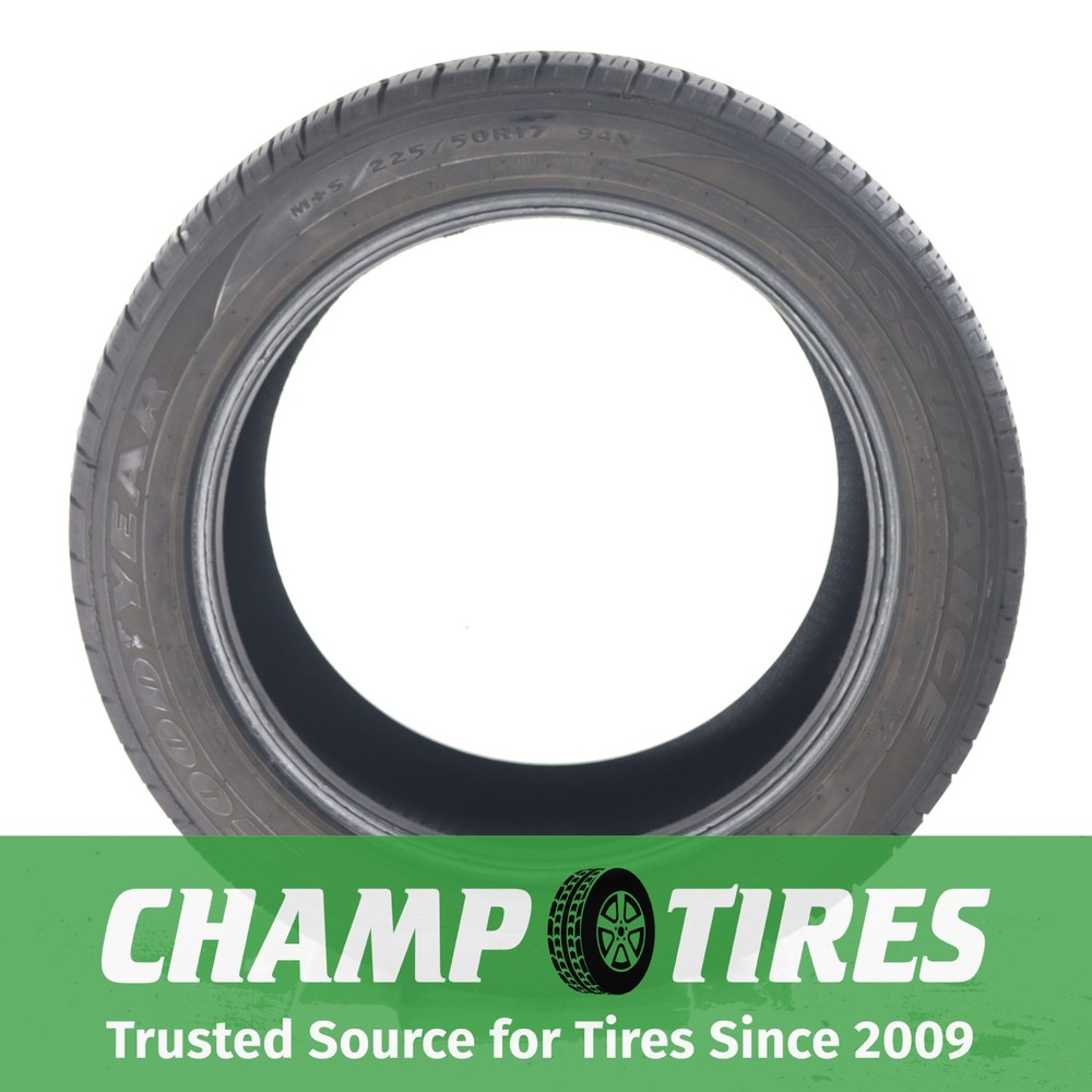 itemTitle Champtires is not an authorized Goodyear dealer. The manufacturer warranty does not apply. P225/50R17 Goodyear Assurance All Season 94 V Used 6/32nds About Champtires Since 2009, Champtires has sold new and the best used tires to drivers across the U.S. Champtires fully inspects – visually and by air-testing – all tires. Some tires have been repaired using an industry-standard plug-patch combination that will last the lifetime of the tire. Champtires will not repair a tire’s sidewall. Tires cannot be returned for having repairs. If you have a question about whether a tire has been repaired or not, send us a message on eBay prior to making a purchase. Tread depths are accurately measured. If you have questions about manufacture dates (DOTs), please also send us a message before placing an order. About our Tires Champtires sources only the highest quality used tires. All tires go through a three-step inspection process, which involves a visual inspection, air-testing and a final check before shipping. Tread depths are accurately measured. Some tires have been repaired using an industry-standard plug-patch combination that will last the lifetime of the tire. Champtires will not repair a tire’s sidewall. Tires cannot be returned for having repairs. If you have a question about whether a tire has been repaired or not, please send us a message. If you have a questions about a tire’s manufacture date, please send us a message as we would be happy to provide the DOT. Customer Service If you have any questions about our tires, including repair status or manufacture date, please send us a message through eBay. All messages will be answered within 24 hours, most often within a few hours. Shipping Details We ship using FedEx Ground to the continental 48 states. Your tires will leave our facilities within one business day. Return Policy Tires can be returned within 30 days if they were inaccurately described or damaged. Please send a message with any return requests. Disclaimer Limitation of Damages: Under no circumstances, including negligence, shall Champtires be liable for any direct, indirect, incidental, special, punitive, or consequential damages that may result from the use or inability to use any product(s) purchased from Champtires, including but not limited to flaws/defects, or any other failure or inadequacy related to the product(s). Disclaimer of Warranties: The product(s) purchased from Champtires are provided “as is,” with all faults, and without warranties of any kind, either express or implied, including but not limited to implied warranties of merchantability and/or fitness for a particular purpose. Pure Pass Through: Champtires is a pure pass through retailer of products, and such products are provided “as is”, with all faults. Assumption of Risk: The product(s) purchased from Champtires are provided “as is,” with all faults. Purchaser acknowledges the risks associated with purchasing a product “as is” and assumes any and all such risks.
