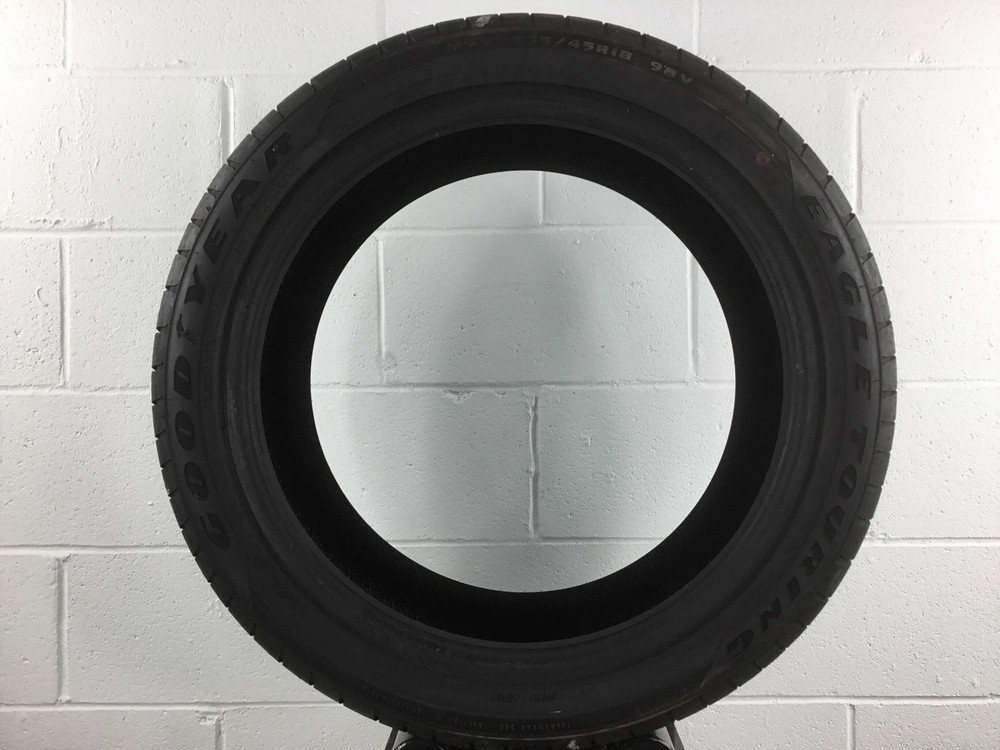 itemTitle Champtires is not an authorized Goodyear dealer. The manufacturer warranty does not apply. P235/45R18 Goodyear Eagle Touring 98 V Used 10/32nds About Champtires Since 2009, Champtires has sold new and the best used tires to drivers across the U.S. Champtires fully inspects – visually and by air-testing – all tires. Some tires have been repaired using an industry-standard plug-patch combination that will last the lifetime of the tire. Champtires will not repair a tire’s sidewall. Tires cannot be returned for having repairs. If you have a question about whether a tire has been repaired or not, send us a message on eBay prior to making a purchase. Tread depths are accurately measured. If you have questions about manufacture dates (DOTs), please also send us a message before placing an order. About our Tires Champtires sources only the highest quality used tires. All tires go through a three-step inspection process, which involves a visual inspection, air-testing and a final check before shipping. Tread depths are accurately measured. Some tires have been repaired using an industry-standard plug-patch combination that will last the lifetime of the tire. Champtires will not repair a tire’s sidewall. Tires cannot be returned for having repairs. If you have a question about whether a tire has been repaired or not, please send us a message. If you have a questions about a tire’s manufacture date, please send us a message as we would be happy to provide the DOT. Customer Service If you have any questions about our tires, including repair status or manufacture date, please send us a message through eBay. All messages will be answered within 24 hours, most often within a few hours. Shipping Details We ship using FedEx Ground to the continental 48 states. Your tires will leave our facilities within one business day. Return Policy Tires can be returned within 30 days if they were inaccurately described or damaged. Please send a message with any return requests. Disclaimer Limitation of Damages: Under no circumstances, including negligence, shall Champtires be liable for any direct, indirect, incidental, special, punitive, or consequential damages that may result from the use or inability to use any product(s) purchased from Champtires, including but not limited to flaws/defects, or any other failure or inadequacy related to the product(s). Disclaimer of Warranties: The product(s) purchased from Champtires are provided “as is,” with all faults, and without warranties of any kind, either express or implied, including but not limited to implied warranties of merchantability and/or fitness for a particular purpose. Pure Pass Through: Champtires is a pure pass through retailer of products, and such products are provided “as is”, with all faults. Assumption of Risk: The product(s) purchased from Champtires are provided “as is,” with all faults. Purchaser acknowledges the risks associated with purchasing a product “as is” and assumes any and all such risks.
