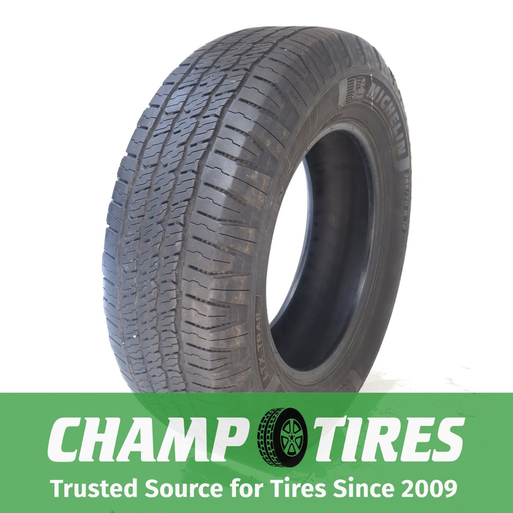 itemTitle Champtires is not an authorized Michelin dealer. The manufacturer warranty does not apply. P265/70R18 Michelin LTX Trail 116 T Used 6/32nds About Champtires Since 2009, Champtires has sold new and the best used tires to drivers across the U.S. Champtires fully inspects – visually and by air-testing – all tires. Some tires have been repaired using an industry-standard plug-patch combination that will last the lifetime of the tire. Champtires will not repair a tire’s sidewall. Tires cannot be returned for having repairs. If you have a question about whether a tire has been repaired or not, send us a message on eBay prior to making a purchase. Tread depths are accurately measured. If you have questions about manufacture dates (DOTs), please also send us a message before placing an order. About our Tires Champtires sources only the highest quality used tires. All tires go through a three-step inspection process, which involves a visual inspection, air-testing and a final check before shipping. Tread depths are accurately measured. Some tires have been repaired using an industry-standard plug-patch combination that will last the lifetime of the tire. Champtires will not repair a tire’s sidewall. Tires cannot be returned for having repairs. If you have a question about whether a tire has been repaired or not, please send us a message. If you have a questions about a tire’s manufacture date, please send us a message as we would be happy to provide the DOT. Customer Service If you have any questions about our tires, including repair status or manufacture date, please send us a message through eBay. All messages will be answered within 24 hours, most often within a few hours. Shipping Details We ship using FedEx Ground to the continental 48 states. Your tires will leave our facilities within one business day. Return Policy Tires can be returned within 30 days if they were inaccurately described or damaged. Please send a message with any return requests. Disclaimer Limitation of Damages: Under no circumstances, including negligence, shall Champtires be liable for any direct, indirect, incidental, special, punitive, or consequential damages that may result from the use or inability to use any product(s) purchased from Champtires, including but not limited to flaws/defects, or any other failure or inadequacy related to the product(s). Disclaimer of Warranties: The product(s) purchased from Champtires are provided “as is,” with all faults, and without warranties of any kind, either express or implied, including but not limited to implied warranties of merchantability and/or fitness for a particular purpose. Pure Pass Through: Champtires is a pure pass through retailer of products, and such products are provided “as is”, with all faults. Assumption of Risk: The product(s) purchased from Champtires are provided “as is,” with all faults. Purchaser acknowledges the risks associated with purchasing a product “as is” and assumes any and all such risks.