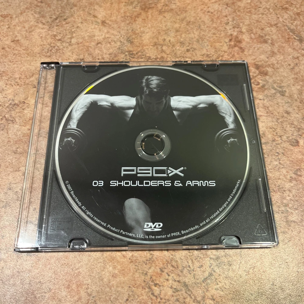 Various replacement discs for P90X Beachbody. Pick and choose! All discs have been tested, discs may have scratches or scuffs. Some of the discs might also be an early version. Get ready for an extreme home fitness experience with the P90X Beachbody Replacement Discs. This DVD set includes a variety of workout programs designed to target aerobics, abs/core, strength training, and cardio. Directed by D. Mason Bendewald and featuring Tony Horton, this instructional movie is perfect for those looking to improve their fitness and overall health. The P90X Workout Series offers a standard edition DVD set with NTSC video format and English subtitles. The jewel case includes additional scenes, commentary, and captioned features for a more engaging workout experience. This DVD set is region code 1 (US, Canada...) and was released in 2008. Get fit and stay healthy with this amazing Beachbody replacement disc set.