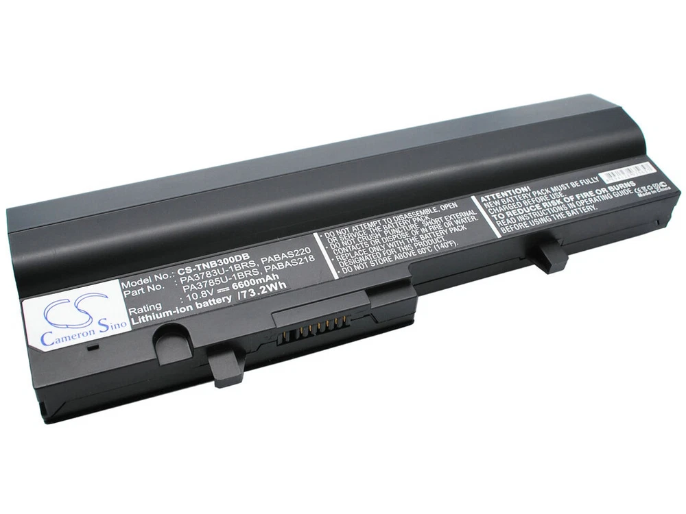 Description # Type: Li-ion # Capacity: 6600mAh # Dimension: 204.74 x 76.06 x 31.79mm # Voltage: 10.80V # Condition: New, with 12 months wty # Certificate: ISO9001, RoHS & CE # Part Number: Toshiba PA3783U-1BRS PA3785U-1BRS PABAS218 PABAS220 Compatibility Toshiba Satellite NB300 Satellite N302 Satellite NB305 Satellite NB305-N410BL Satellite NB305-N410BN Satellite NB305-N410BN-G Satellite NB305-N410WH Satellite NB305-N411BL Satellite NB305-N411BN Satellite NB305-N413BN Terms & Conditions Tips you need to consume all electricity of the battery when you use it at the beginning, then charge it . Repeat this practice 2-3 times,it can extend the battery 's life Shipping Policy BatteryCentre offers a FREE USPS SHIPPING on all domestic orders. Express Shipping options are also available at additional cost. All orders take 48 hours (Mon-Fri) to process before being shipped. In most cases, your order is shipped out at the same business day when you place the order. This Processing Time is completely separate from the Shipping Time, therefore, to estimate Delivery Time, please consider the following: Processing Time + Shipping Time = Delivery Time Please note that the Delivery Time doesn't count the weekends and USA national holidays. Return Policy We make the returns without pain. Within 14 days after receipt of products, you may choose to return the product(s) for a full refund, exchange or replacement. After 14 days of receipt, you can return the product(s) only for replacement due to defective (excluding wear-down effect) if your warranty has not expried. Taxes California sales tax of 7.5% will apply to orders shipped to an address in the State of California. we promise 1. All Products are Certificated with ISO9001, RoHS, and CE.A grade quality, 100% new, durable and practical.Cameron Sino 12 years experience in battery. 2. 100% New Manufacturer, factory direct supply and best price, works as genuine parts, Grade A cells ensure fast charges and low power consumption; Built-in circuit protection ensures both safety and stability. 3. This is a for you to save money, save time, high capacity of circular function, perfect to replace the original battery, can according to need to charge or discharge, without loss of capacity. 4. Warranty: Your Repeat Business Is Important for Us, Any Question, Please Feel Free to Contact Us. We Promise that We Will Help You to Solve Questions.24 x 7 Email Support. 5.Need more battery! You can contact us ~~(*^▽^*)~~ Feedback We strive to provide the best products and services. Your positive feedback 5 stars DSR help us do better . If anything about your transaction did not meet expectations, please CONTACT US and give us the opportunity to make things right. We are always here to help.