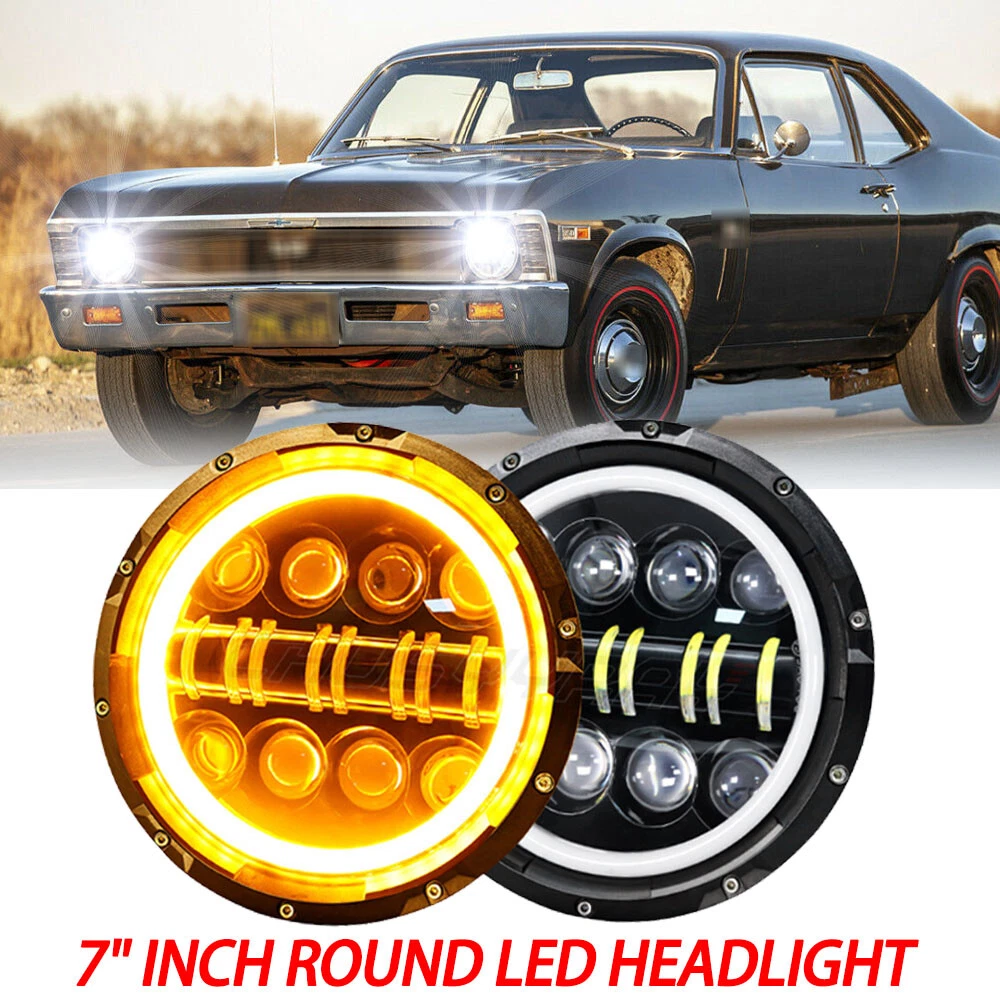 PAIR 7" inch Round Led Headlight High-Low Halo Beam fit Chevy II/Nova 1969-1979
