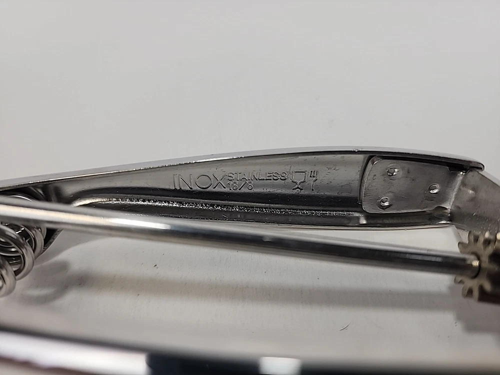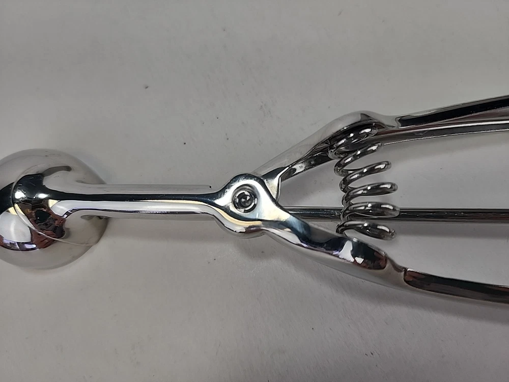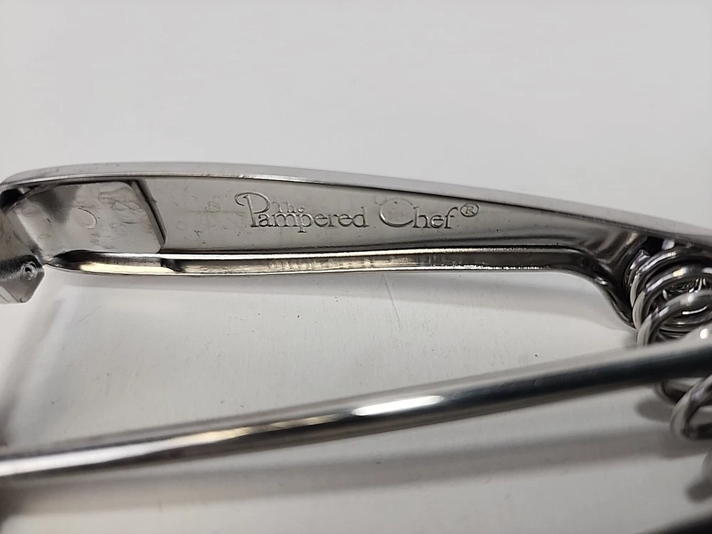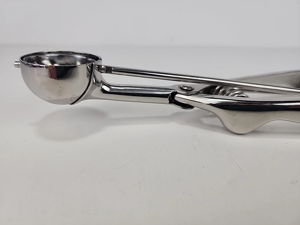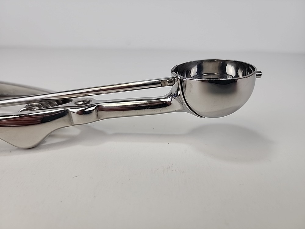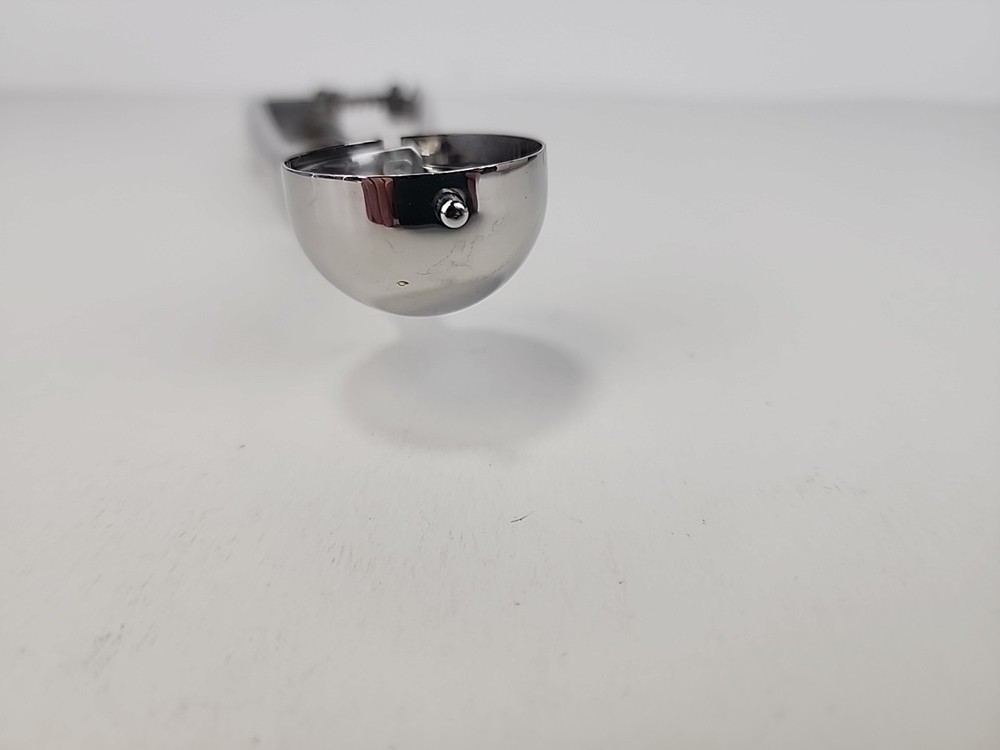 The PAMPERED CHEF INOX 18/8 Scoop Melon Baller/Ice Cream is a high-quality stainless steel tool designed for easily scooping and serving ice cream. With its sleek silver color and brand name reputation of Pampered Chef, this scoop melon baller is a stylish and durable addition to any kitchen tool collection. Perfect for creating perfectly shaped melon balls or elegant scoops of ice cream, this versatile gadget is a must-have for anyone looking to elevate their dessert game.