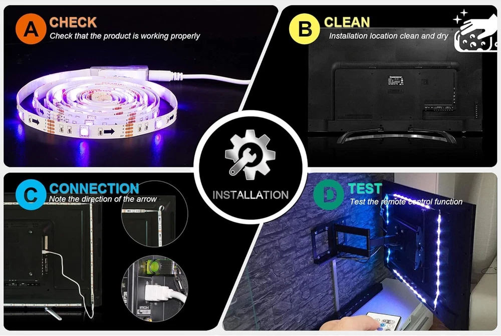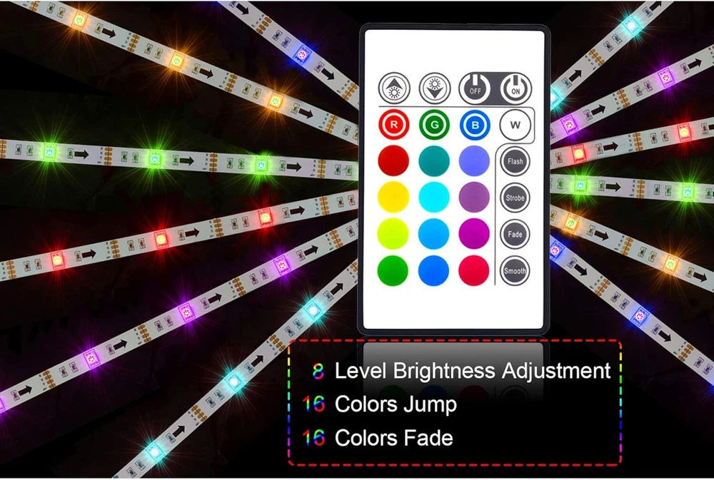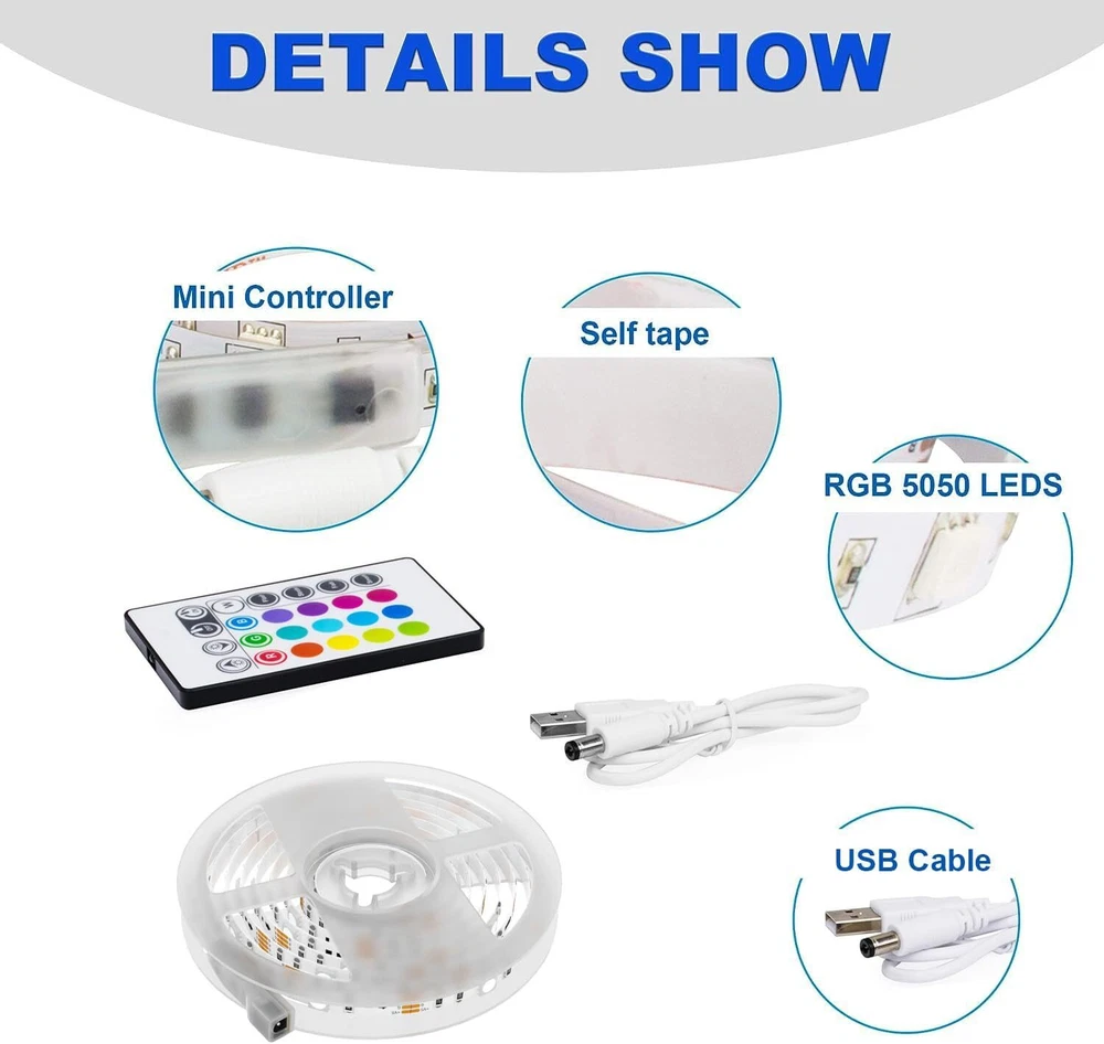 PANGTON VILLA Led Strip Lights 8.2ft for 8.2 ft, RGB (Red, Green, Blue) Product Details Is Discontinued By Manufacturer : No Product Dimensions : 6.5 x 4.05 x 0.67 inches; 3.52 ounces Item model number : EK-40-60 Batteries : 1 Lithium Metal batteries required. (included) Manufacturer : Pangton Villa Color: RGB (Red, Green, Blue) Brand: PANGTON VILLA Indoor/Outdoor Usage: Indoor Special Feature: Indoor decorations, rgb led Light Source Type: LED Power Source: usb Light Color: Blue Theme: Tv Occasion: Christmas Style: Modern Light up every side of your tv - 98.4in / 2.5m 5050 led light strip for 40-60 inch tv Led tv lights can improve image clarity 24 key remote:16 color, dimmable 4 modes. Control distance 19. 6Ft-26. 2ft Install procedure-double sided adhesive tape Installation, we made the mark on the light strip, just connected it according to the mark Working voltage: The product is powered by dc 5v tv usb interface. PANGTON VILLA Led Strip Lights 6.56ft for 40-60in TV USB Backlight Kit with Remote-16 Color 5050 HDTV Bias Lighting