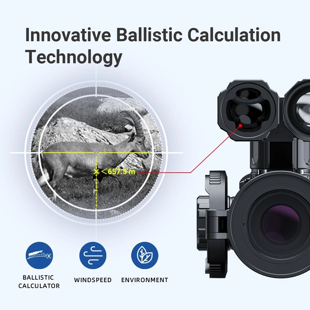 DESCRIPTION & KEY FEATURES The Night Stalker 4K Series offers a higher resolution of 3840 x 2160 CMOS sensor, providing greater clarity and detail in images and videos captured in low-light conditions. This high resolution enables better identification of targets. Despite its advanced technology, the Night Stalker 4K Series maintains a traditional day scope exterior, ensuring familiarity and ease of use for users accustomed to conventional scopes. Moreover, it is a multifunctional day and night scope with cuting-edge technology. With a ballistic calculator and a 1000m/1200yds LRF, users can improve their accuracy and hunt smarter with intelligent technology. K ey Features 1 800*800 Circular IPS display, first in the world 2 Image shift zero 3 Ballistic calculator 4 Patented focus-free lens cap 5 Long eye-relief display system (LEDS) 6 350m adjustable IR fill light 7 1000m/1200yds laser rangefinder 8 Self-activated recording 9 Completely new UI 10 4 Image modes (color, black and white, green and yellow) 11 Multi-functional control knob 12 WiFi 13 IP67 rating 14 6000J recoil resistance