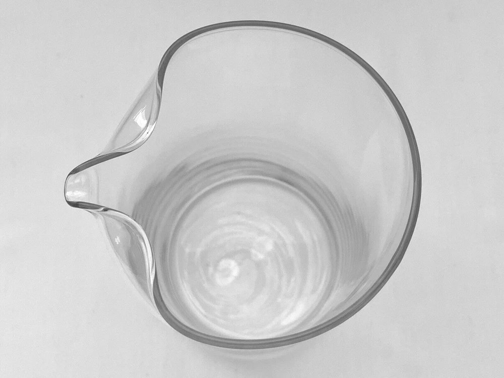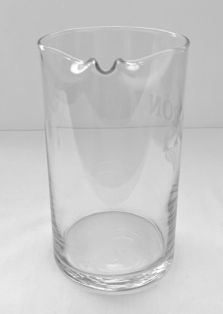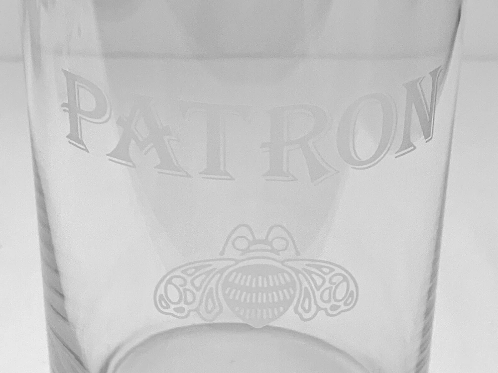 PATRON TEQUILA GLASS COCKTAIL MIXING PITCHER 6" TALL 3.25" WIDE HOLDS APPROX. 20 oz WHITE PATRON AND BEE LOGO EXCELLENT PRE-OWNED CONDITION, NO CHIPS, SCRATCHES OR WATER STAINS