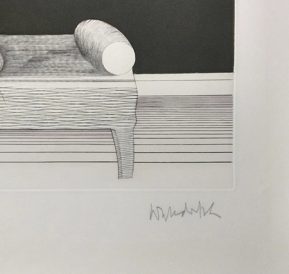PAUL WUNDERLICH "SOFAFIGUR" ETCHING AND AQUATINT ON LANA PAPER SHEET SIZE: 26.2 X 20.1 INCHES IMAGE SIZE: 19.3 X 14.9 INCHES FRAME SIZE: APPROX 29 X 25 INCHES EDITION: OF 95 YEAR: 1968 SIGNATURE: HAND SIGNED AND NUMBERED BY THE ARTIST CERTIFICATE OF AUTHENTICITY INCLUDED ARTWORK IS IN EXCELLENT CONDITION ADDITIONAL IMAGES AVAILABLE UPON REQUEST US Shipping FREE Standard Domestic Shipping International Shipping $300.00 Int'l. Shipping Charge