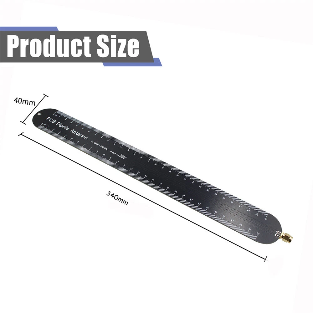 Product Description If you have any questions, please contact customer service first, do not open disputes easily, thank you! Features: Wide frequency range from 430 MHz to 440 MHz. Linear polarisation for excellent gain over the entire range. Low VSWR over the entire range, no resonance. Extremely low loss substrate. Individually calibrated and tested. SMA output connector. Maximum power 10W (CW). Applications: Wireless intercom systems Universal SDR Antenna Radiocommunications LTE, WIMAX, WIFI, PCS, UWB, GSM, HDTV, IoT Signalling and Communication Intelligence (SIGINT, COMINT, ELINT) Pulsed Radar Broadband Software Defined Radio (SDR) Antennas EMC Testing Spectrum Analysis Direction Finding Description: The PDA435 is a PCB dipole antenna optimised for low VSWR and broadband response. The matching network has been optimised for best VSWR and clean impulse response. Each antenna is individually tested. Specifications: Gain: 1.7dBi @ 435 MHz Beamwidth: Omni-directional VSWR: 430 MHz - 440 MHz typical Withstanding Power: 10 Watts Length: 345mm Connector: SMA Package includes(optional): 1pcs*Antenna Notes: The package does not include other products such as testing instruments. Thanks! About Us We accept all payments authorized by eBay. About Us We accept all payments authorized by eBay. powered by