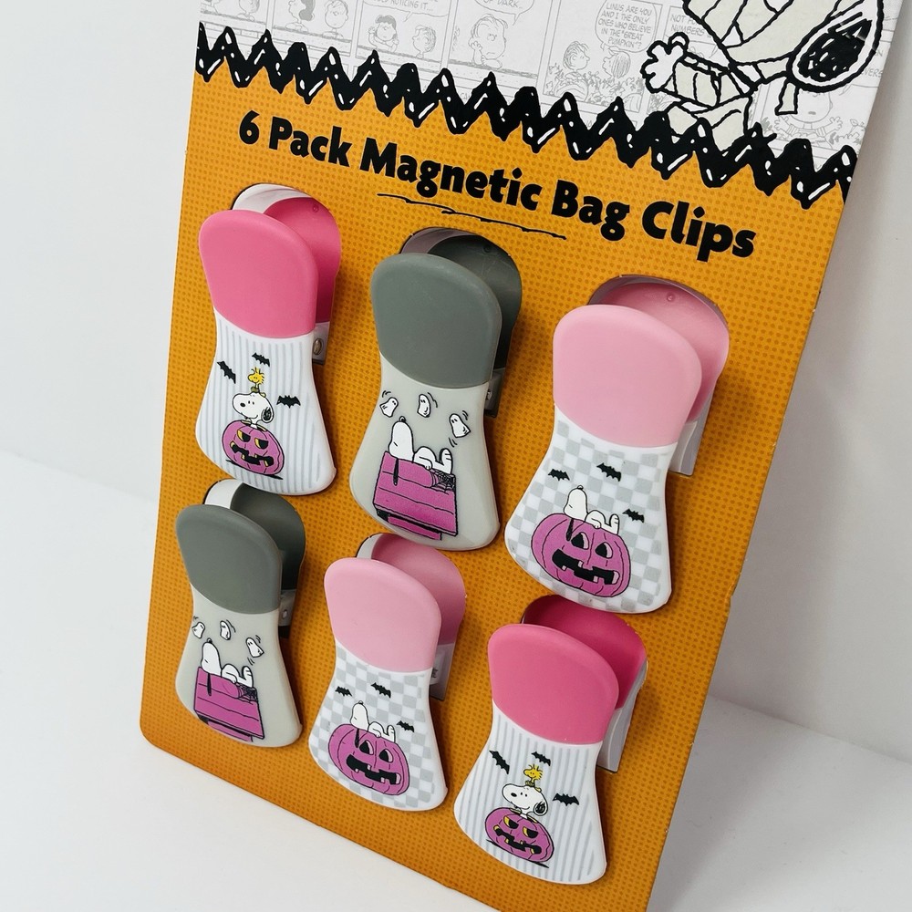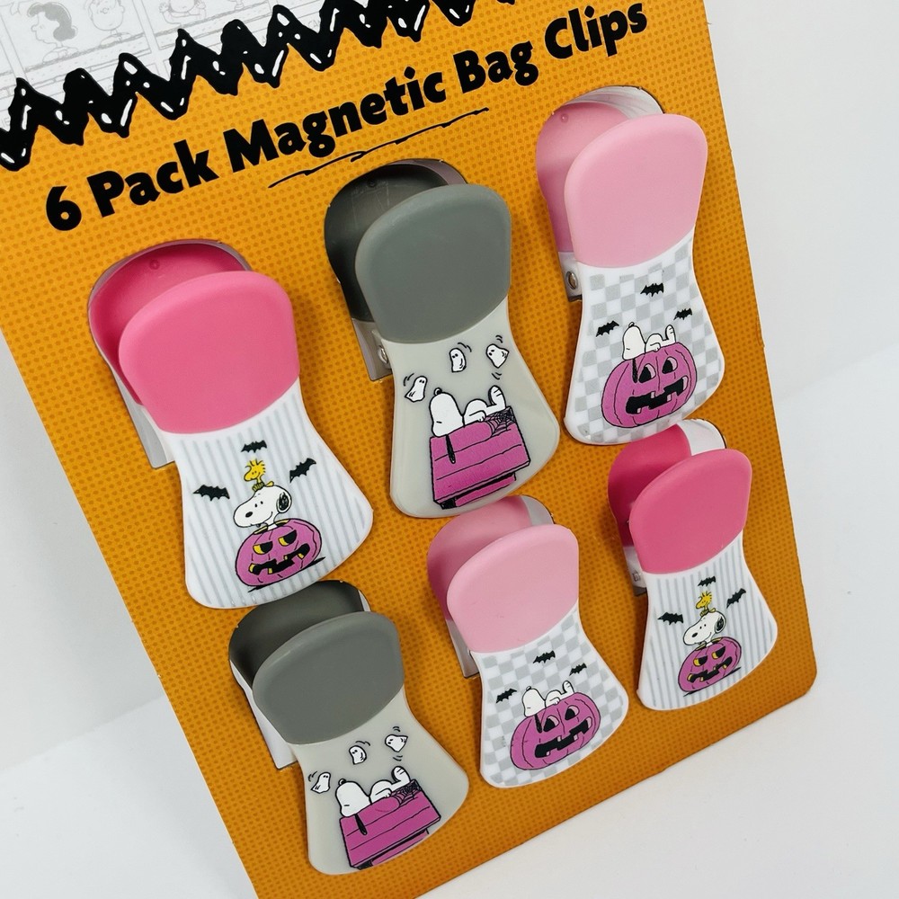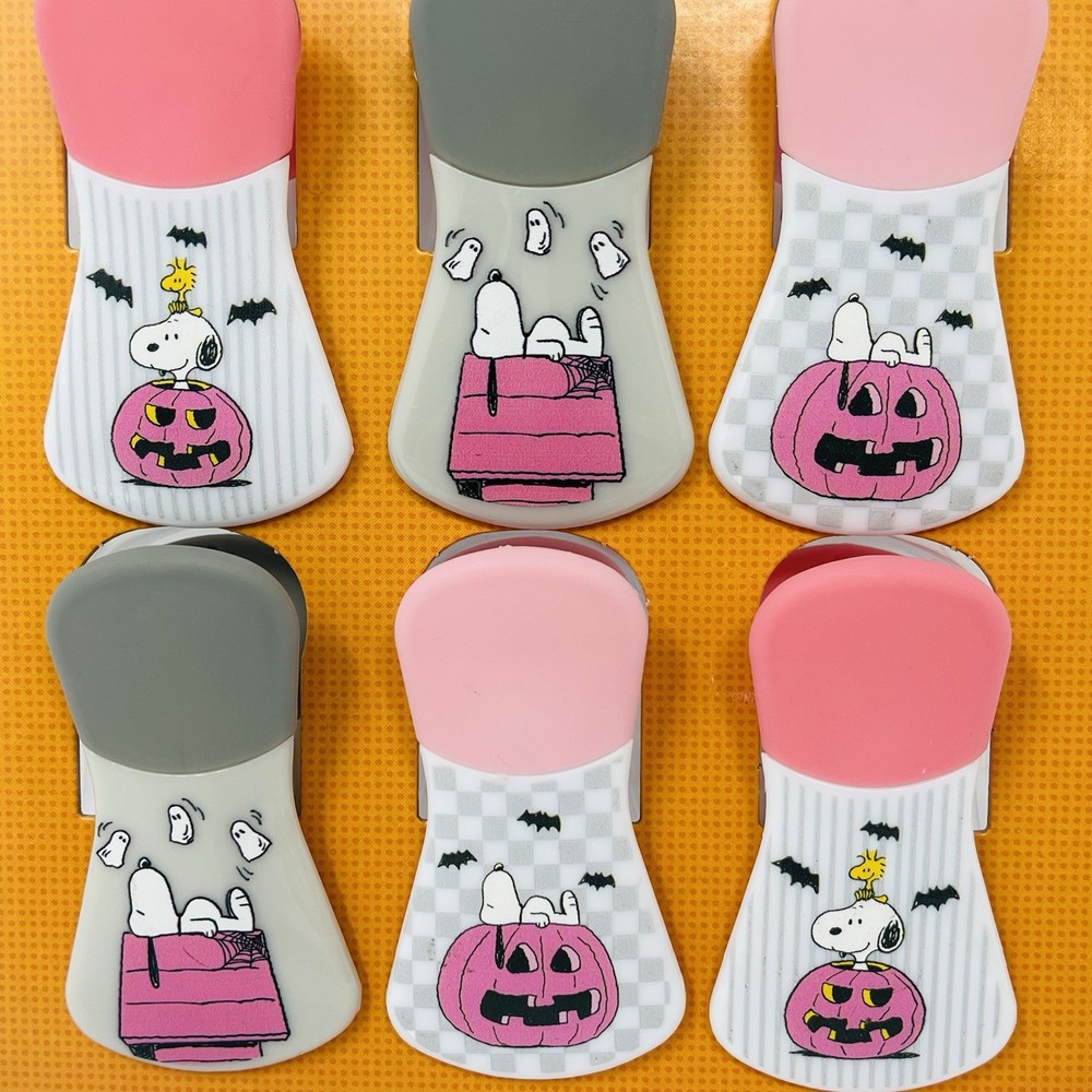 PEANUTS Snoopy 6 Pack Bag Clips Halloween Gray Pink Dog House Woodstock Ghosts