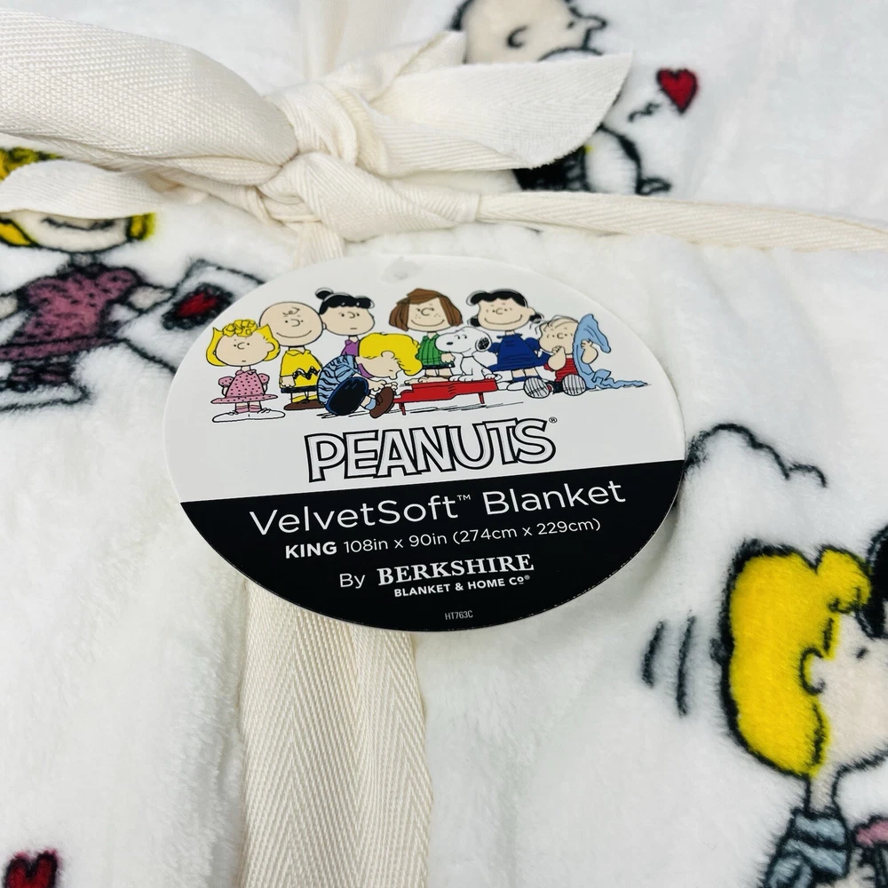 PEANUTS Snoopy KING Throw Blanket 108”x90” Valentines Day Cards Lucy Kisses NEW