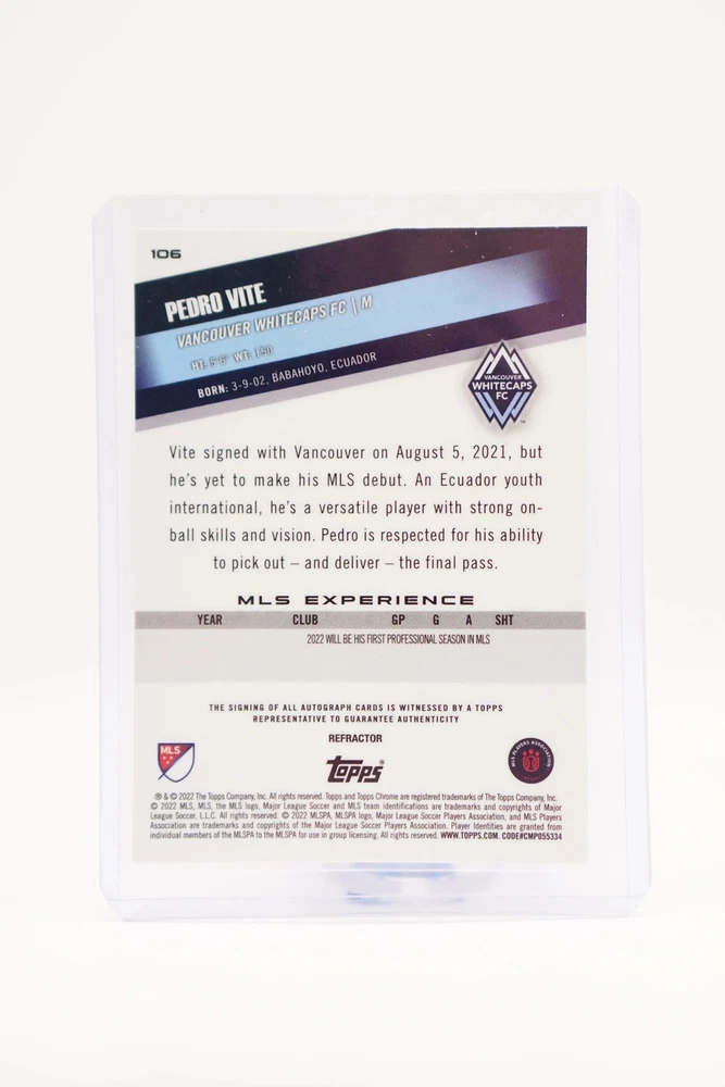 PEDRO VITE 2022 Chrome Major League Soccer Vancouver Whitecaps RC Auto