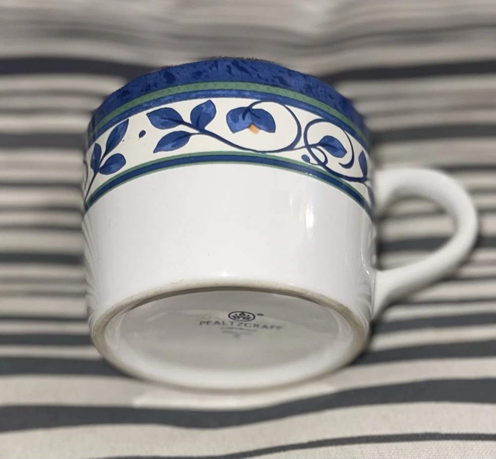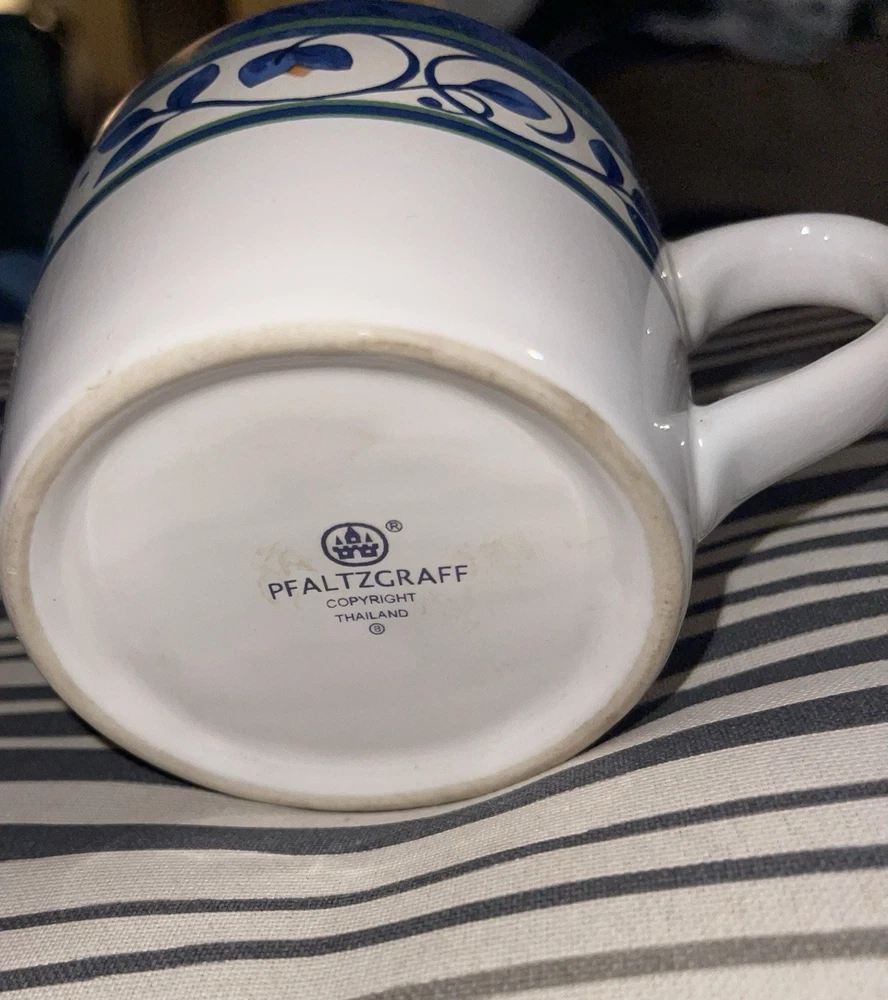 Elevate your morning routine with the timeless elegance of Pfaltzgraff's mid-century modern mug set. Each cup in this four-piece collection showcases a classic blue and white floral pattern, delivering a touch of sophistication to any table setting. Crafted from high-quality ceramic and stoneware, these mugs are designed to keep your beverages at the perfect temperature, hot or cold, for a satisfyingly long time. The glossy finish and round shape make these mugs as visually appealing as they are functional. Suitable for all occasions, from celebrating new homes to expressing condolences, they come with a lifetime manufacturer warranty and are easy to care for with a simple hand wash. Proudly made in the United States, this set is an enduring addition to your home or a thoughtful gift for anyone who appreciates the charm of vintage pottery. Also great for decoration if that is what you do in your home. I got them passed down from my great grandmother and would love to see them be used other than sitting on top of my cabinets!