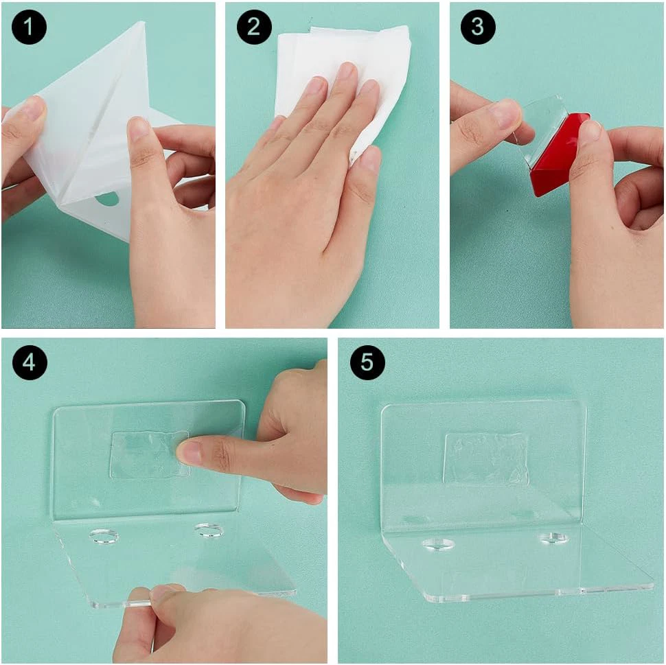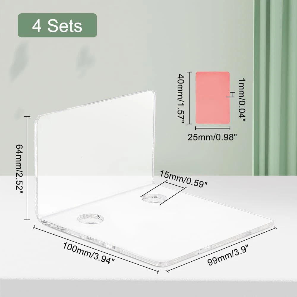 PH PandaHall 4 Pack Acrylic Wall Shelves, 10cm Mini Clear Floating Shelves Small Pack of 4: package includes 4pcs clear acrylic floating shelves and 8pcs stickers, quantity is sufficient to meet your replacement and decoration needs, help to utilize your wall space efficiently,turning useless space on the walls into a spacious storage area. Small Floating Shelf:each acrylic display shef is about 10x10x6.5 cm (3.9x3.9x2.6 inch). Suitable size for you to use, make the accessories well displayed on the wall with the clear floating shelves, help maximize your storage space. Wide Applications: the display shelves are usually applied to hold cameras, monitor, battery chargers, plant pot, smart speakers, succulent plants, earphones, small pictures, napkin, small decors, switches, key, remotes, figures, etc. Easy Installation: come with 8pcs stickers, strong and waterproof, just paste the shelf to wall. Won't damage wall, easy to install, you can choose the way to install depending on the type of your wall. Suitable for glass, metal, marble, wooden, etc. (Not applicable to screws.) Quality Material: the floating shelves are made of acrylic, compact and practical, durable and sturdy, not easy to break or deform. Suitable for various places, such as bedroom, office, kitchen, living room, bathroom, classroom, office, etc.