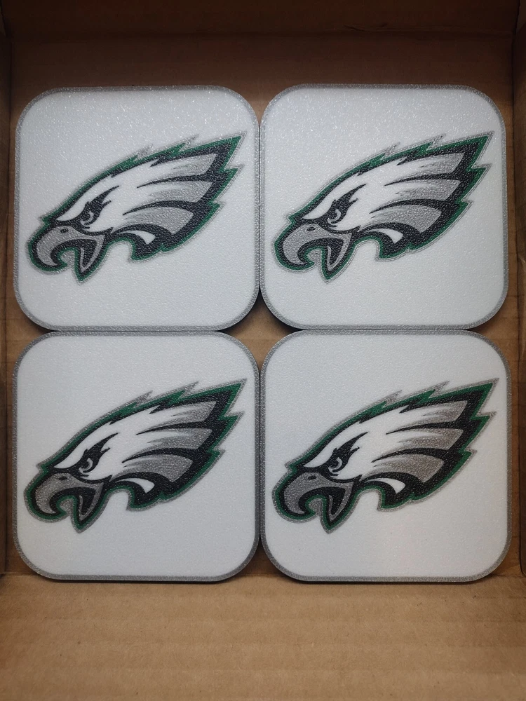 Sport: Football-NFL Shape: Square or Rounded Personalize: No Theme: American Football Character Family: Sports Material: Plastic Color: Multicolor Item Length: 3.5" Item Width: 3.5" Number of Items in Set: 4 Brand: PR!NT3D Occasion: Sports Type: Coaster Set Country/Region of Manufacture: United States