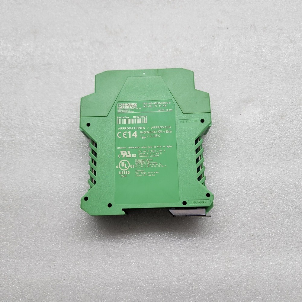 We are pleased to offer PHOENIX CONTACT PSM-ME-RS232/RS485-P INTERFACE CONVERTER 2744416 Product Detail: PHOENIX CONTACT PSM-ME-RS232/RS485-P INTERFACE CONVERTER 2744416 MODEL: PSM-ME-RS232/RS485-P ORDER NO: 2744416 TYPE: INTERFACE CONVERTER Shipment processing time: All orders are processed within 1-2 business days. Orders are not shipped or delivered on weekends or holidays. Shipment confirmation & Order tracking: You will receive a Shipment Confirmation email once your order has shipped containing your tracking number(s). The tracking number will be active within 24 hours. Customs, Duties and Taxes: We are not responsible for any customs and taxes applied to your order. All fees imposed during or after shipping are the responsibility of the customer (tariffs, taxes, etc.). Damages: In case of damage or lost of shipment during transit, We will investigate the matter and provide the satisfactory resolution. Returns Policy: We offer return or exchange of ordered item up to 30 days of receipt of goods in subject to certain condition. In case of damaged goods we shall offer the replacement or refund for the ordered item. If you require any more details, request you to send us the direct message through eBay for early resolution. Thanks