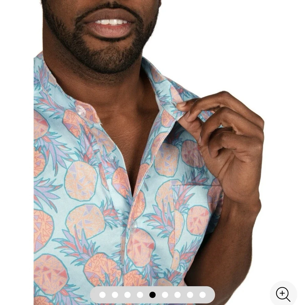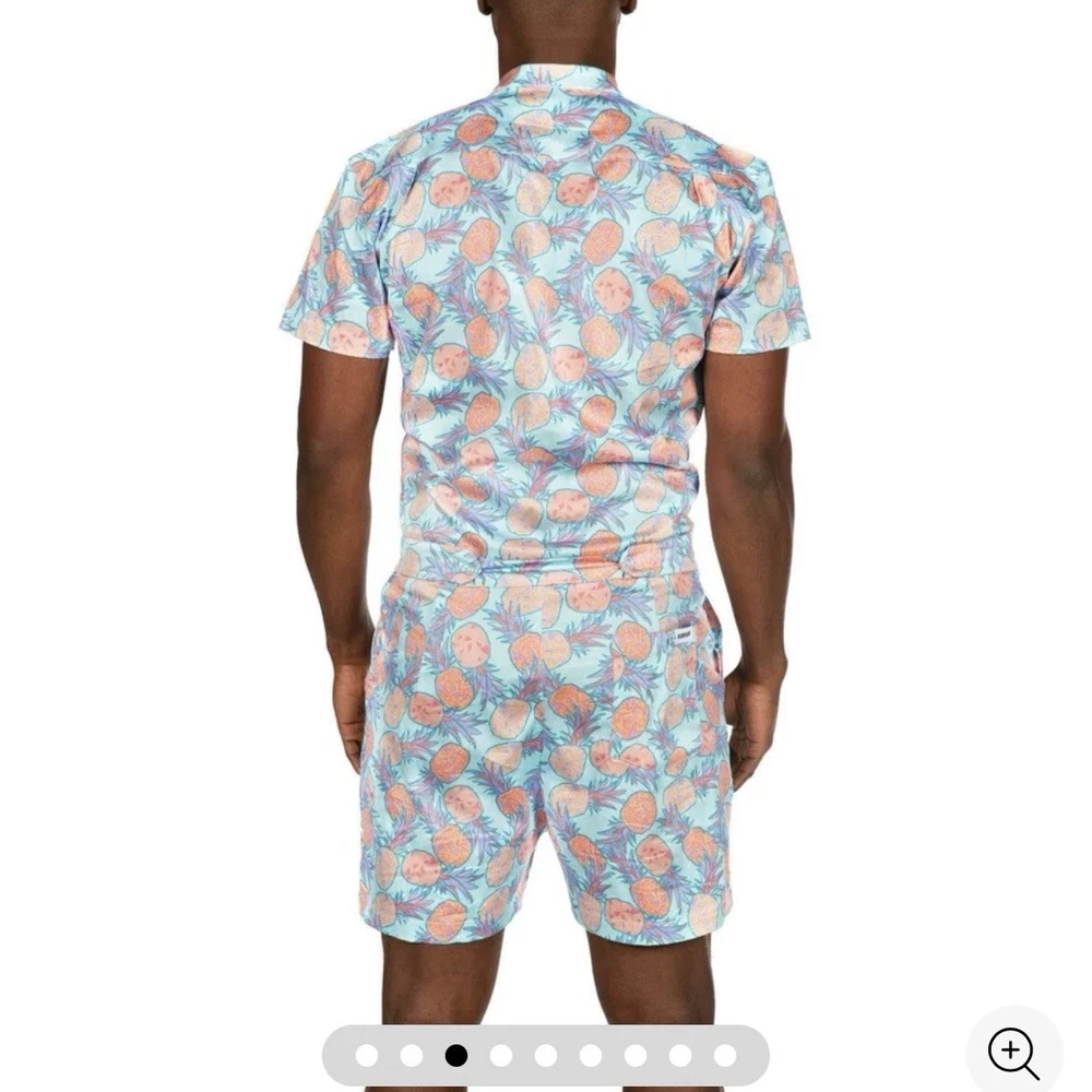PINA COLADA ROMPHIM pineapple tipsy elves size M men’s NEW Vibrant colors, pockets at front and back, button closure. Green aqua color with orange and purple pineapples all over. Super cool and eye catching! Instagram: nina_benok