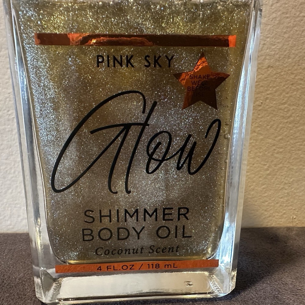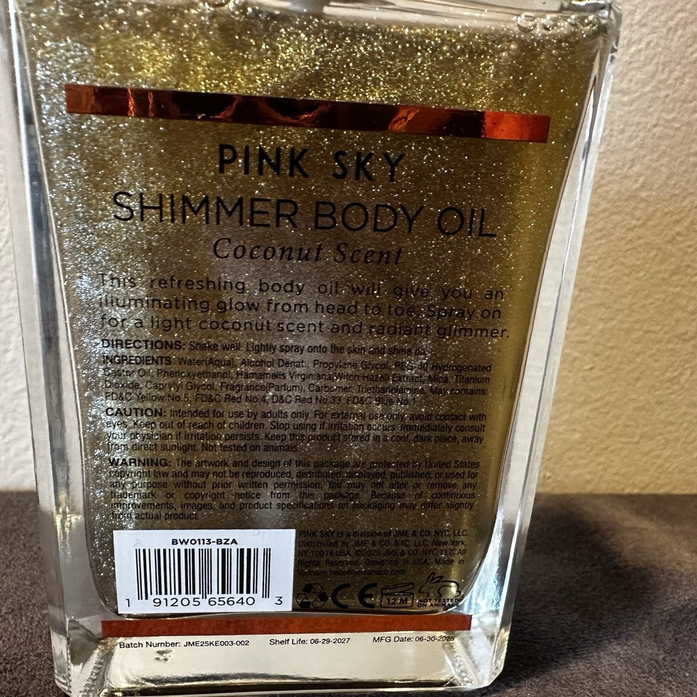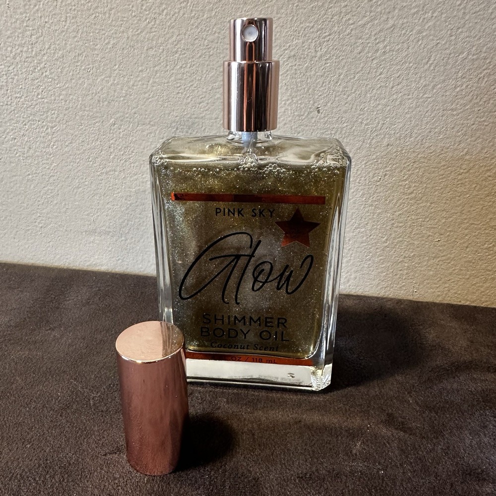 PINK SKY Glow Shimmer Body Oil Mist Light Coconut Scent Spray Glass 4 Fl Oz.