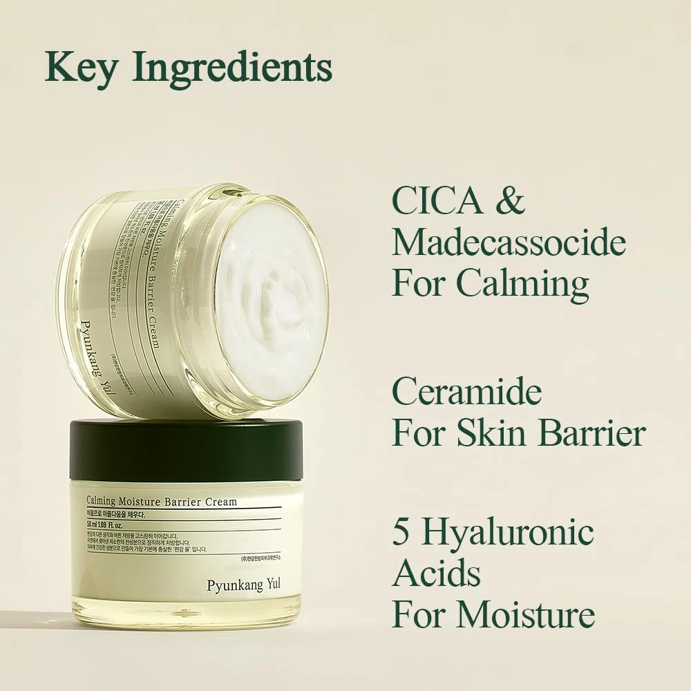 [Long-lasting Hydration Cream for Sensitive Skin] 5types of cica instantly soothes irritated skin without stickiness, leaving it refreshed and calm with a highly moisturizing texture. [Clinically Proven Effects] Provides 24-hour hydration, reduces pore size by 37.5%, decreases blackheads by 6.9%, lowers oil content by 14.9%, and reduces sebum production by 44.3%. [Suitable for All Skin Types, Especially Sensitive and Troubled Skin] Non-comedogenic, Vegan, Zero Irritation. [Key ingredients] Cica & Madecassoside for Calming, Ceramaide for Skin Barrier, 5Hyaluronic Acids for Moisture [50-Year Philosophy] Skincare that focuses on fundamental causes rather than temporary effects, providing comfortable skin relaxation with minimal ingredients. Product Description Calming Skincare Line Add to Cart Add to Cart Add to Cart Add to Cart Add to Cart Add to Cart Add to Cart Customer Reviews 4.5 out of 5 stars 413 4.5 out of 5 stars 1,049 4.5 out of 5 stars 673 4.4 out of 5 stars 5,273 4.4 out of 5 stars 5,273 4.4 out of 5 stars 5,273 4.4 out of 5 stars 939 Price $15.99 $ 15 . 99 $15.43 $ 15 . 43 $19.99 $ 19 . 99 $15.99 $ 15 . 99 $15.99 $ 15 . 99 $15.99 $ 15 . 99 $14.90 $ 14 . 90 Key Benefits Mild deep cleansing Smooth skin texture Smooth skin texture Skin vitality Deep nutrition Intensive hydration Skin barrier Key Ingredients AHA, PHA, Centella Asiatica AHA, PHA, 5 Hyaluronic acid AHA, PHA, Madecasoside Madecasoside, Collagen Centella Asiatica, Peptide Madecasoside, Ceramide Centella Asiatica, Peptide When to use For cleansing skin After Cleansing Post-cleanse, Exfoliate After Serum, Dry After Serum, nourish After Serum, irritated After Toning Zero Irritation ✔ ✔ ✔ ✔ ✔ ✔ ✔ Vegan ✔ ✔ ✔ ✘ ✔ ✔ ✔
