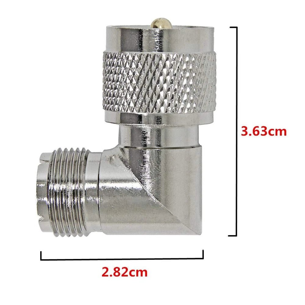PL259 Right Angle, 2 Pack UHF Male to Female Coax Connector Adapter, 90 Degree Elbow for CB Ham Radio Antenna, Coaxial Cable UHF Male PL 259 to Female SO 239 adapter works great with CB radio antenna, coaxial cable, wireless LAN devices, Wi-Fi radios external antenna, etc. Good quality, made with copper material, gold plated contacts, nickel plated body for higher signal transmission and extremely low signal loss. Impedance: 50 Ohm. Coax 90 degree adapter can be used in tight spaces. Come with 2 Pack. Shipping We offer FREE shipping on all orders! We ship within Three business days of payment, usually sooner. We use a selection of shipping services such as UPS, FedEx, USPS etc. We only ship to the lower 48 states, no APO/FPO addresses or PO Boxes allowed. Local pickups and combined shipping options are not provided at this time. Return You can return a product for up to 30 days from the date you purchased it. Any product you return must be in the same condition you received it and in the original packaging. Please keep the receipt. Payment We accept payment by any of the following methods: PayPal Please pay as soon as possible after winning an auction, as that will allow us to post your item to you sooner! Feedback Customer satisfaction is very important to us. If you have any problem with your order, please contact us and we will do our best to make you satisfied. Contact Us If you have any queries, please contact us via ebay. We usually respond within 24 hours on weekdays. Please visit our eBay store to check out other items for sale! Thank you for shopping at our store.