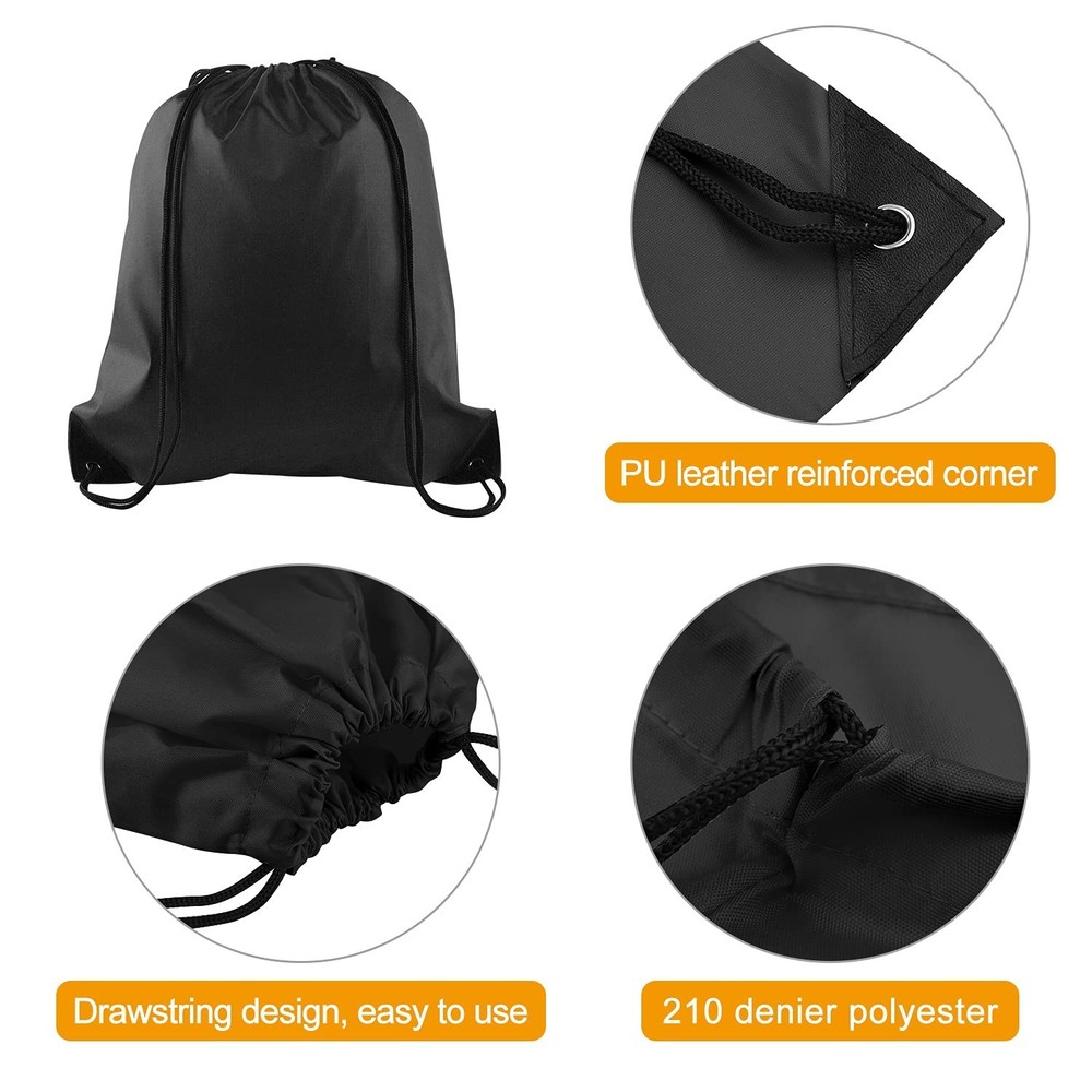 PLULON 25 Pcs Black Drawstring Bags Bulk, Black Drawstring Backpack Bulk String Backpack Cinch Sack Pull Sport Gym Backpack Bags for Yoga Traveling Outdoor Sports Product Details Color: Black Number of Items: 25 Brand: PLULON MPN: A3086PLJYB UPC: Does not apply EAN: Does not apply Product Dimensions: 13.39 x 16.54 x 2.76 inches Item Weight: 1.83 pounds Department: unisex-adult Manufacturer: PLULON Country of Origin: China Item model number: A3086PLJYB Age Range Description: Children Item Weight: 1.83 Pounds Number Of Items: 25 Units: 25 Count Package included: 25* black drawstring bags. Enough quantity for you, also can share them with your families and friends,the recommended Age Grade Over 7 years old Drawstring bag measures 34cm*42cm/13.4"*16.5". Great size to carry books, clothing, umbrella, a pair of shoes, etc. High quality, drawstring backpack is made of 210D polyester, PU leather reinforced corner. Lightweight, sturdy. Please wash it by hand in cold water, can be reused. Reduce plastic waste by reusing reusable cloth bags The drawstring bags have no letters or patterns. You can print favorite pattern or words on it to make a unique bag. Perfect gifts for your friends or children The string bag is perfect for sports, gym, yoga, picnic, camping, travel and more. Note: We will check the quantity strictly before delivery, but please do contact us if there is still a problem of less delivery,Please keep away from kids the age is under 7 years old, play under adult's supervision