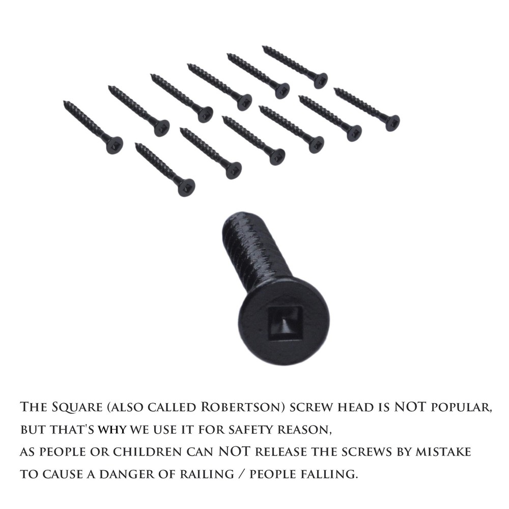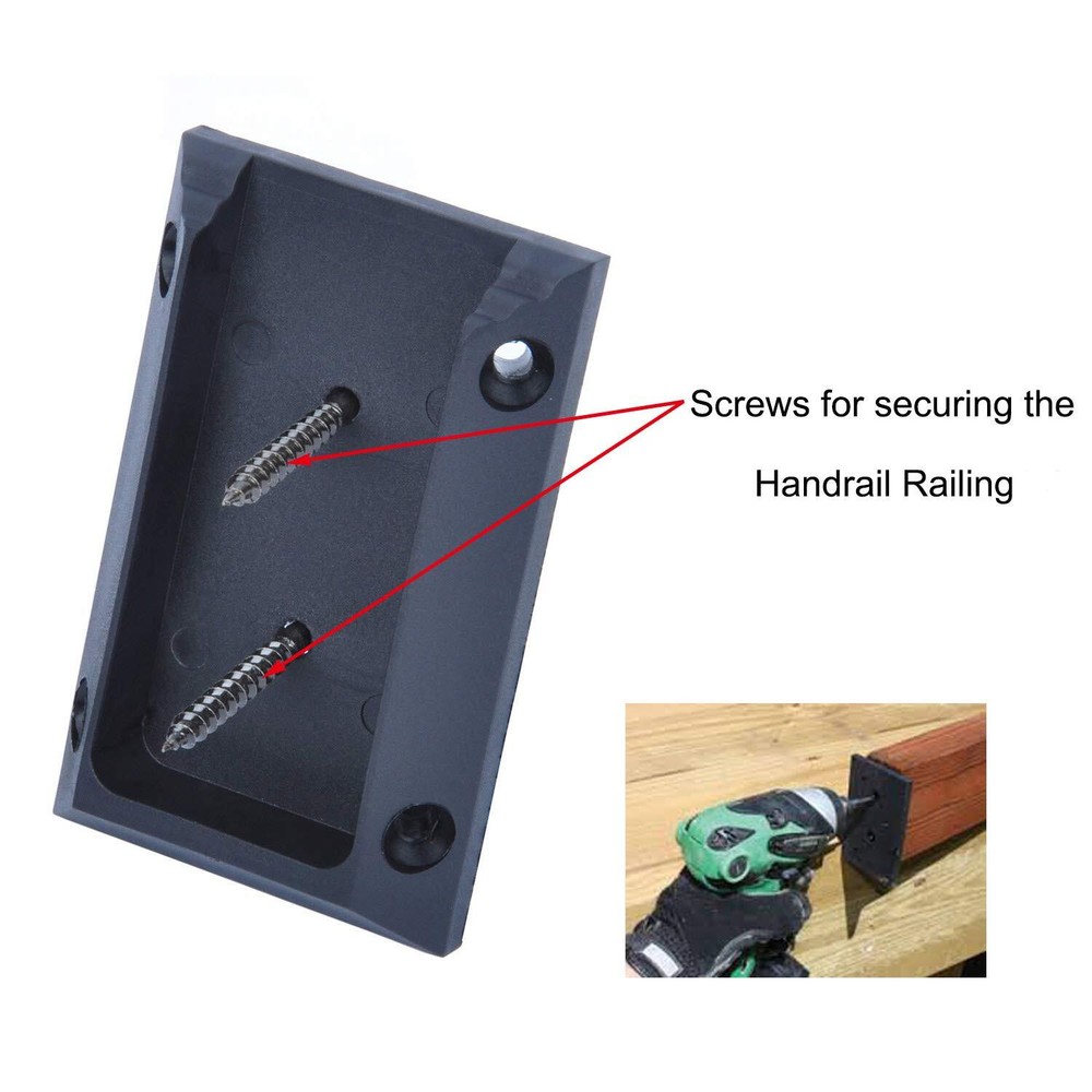 Feature: ▼ Includings: 5 pairs (equals 10 pcs) of railing connectors, 60 pcs black coating Stainless Steel #304 screws. ▼ Easily and accurately install the 2"x4" railing (actual 1-1/2" x 3-1/2") to post at 90 degrees. ▼ Sanding / trimming may be required at railing ends' corners and edges due to wood external size error. ▼ Myard Railing Connector works on wood and composite railings. ▼ Solid pieces, not hollow cheap one. ▼ Upgraded materials: Nylon + Fiber + Anti-UV. 2 times more durable than normal ABS, PP... products. ▼ Color options: Black, Red. ▼ Each connector 4 holes at side for installing railing to post with 4 screws at 30 degrees (weight capacity 50% more). 【Size】Fits a nominal standard 2 x 4 inches post (Actual 1.5 x 3.5 inches). Quantity: 10 pcs. ▼ Includings: 5 pairs (equals 10 pcs) of deck rail bracket connectors, 60 pcs Stainless Steel #304 screws (Hardness class #12.9 + Dacromet black coating). ▼ Color Options: Black or Red. ▼ Pack Options: 2, 10, 20 or 40. 【Features】Myard Deck Railing Connectors, suitable for both wood and composite railings, feature a minimalist design for a clean, attractive appearance and use high-quality materials for increased durability. ▼Installed with screws, the high-hardness screws included make the installation more convenient and easy. 【Upgrade Sturdy】Made of upgraded materials: Nylon + Fiber + Anti-UV. Offers twice the durability compared to normal ABS and PP products. ▼ Solid construction, not hollow or flimsy. ▼Stainless steel 304 screws with weather-resistant black coating, meeting the top hardness standard of 12.9 level. 【Easy Installation】Accurately install the 2"x4" railing (actual 1-1/2" x 3-1/2") to the post at a 90-degree angle. ▼ Sanding or trimming may be required at the corners and edges of the railing ends due to wood size discrepancies.▼ Each connector has 4 holes on the side for installing the railing to the post with 4 screws at a 30-degree angle, increasing weight capacity by 50%. ★ Friendly Reminder: Please read the full instructions before installation. 【Enhance Railing's Appearance】Myard post connectors are designed to join 2"x 4" railings to posts at a 30° angle, allowing you to customize the look of your stair railing and elevate its overall appearance. ▼ For those wanting to add a unique touch to stair railings, we also offer inclined stair railing connectors (Search "PNP111902S").