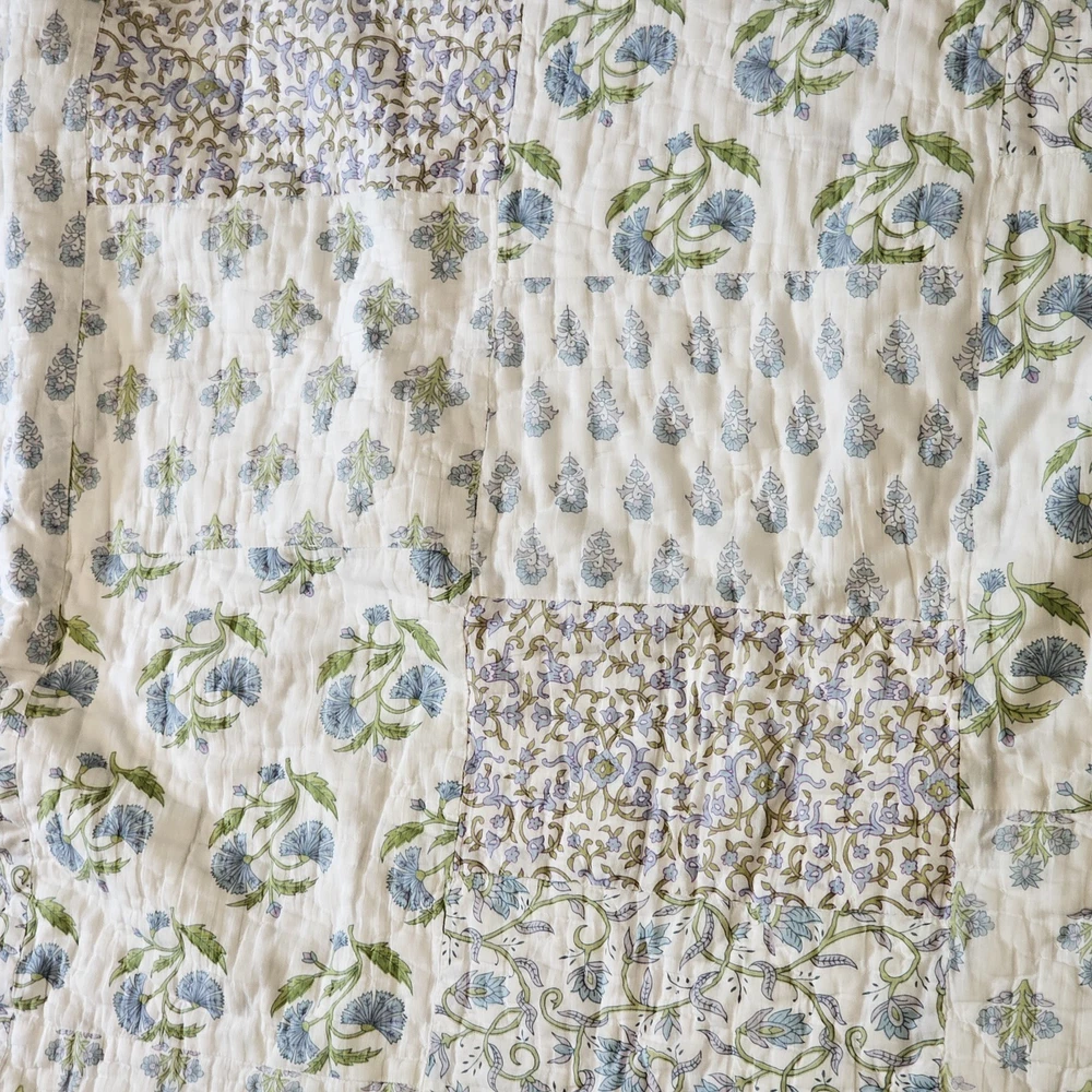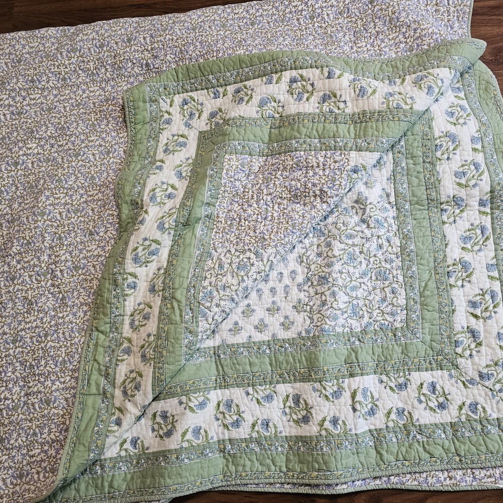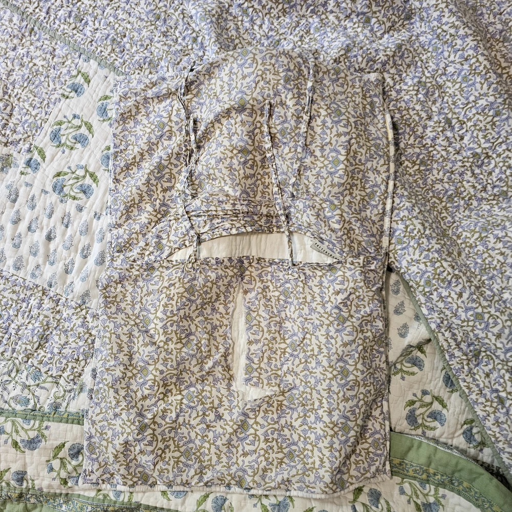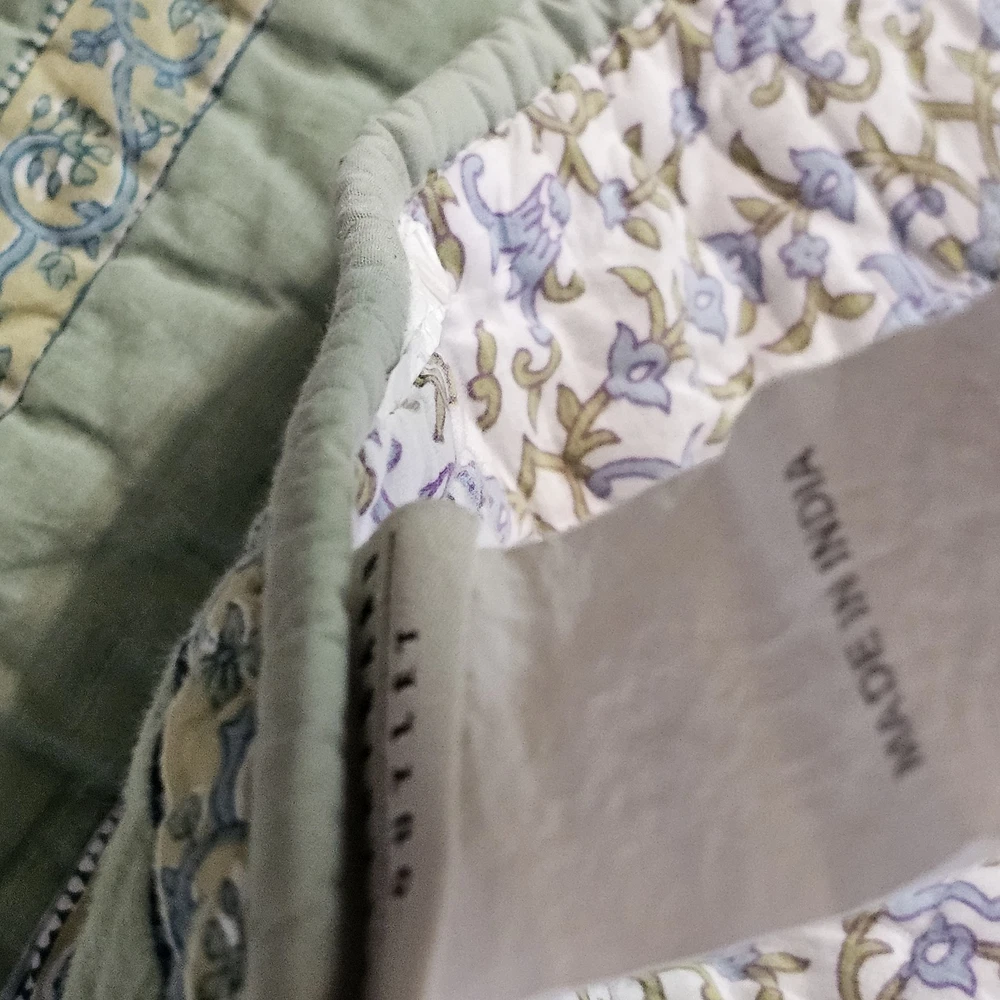 The Pottery Barn Floral Quilt Cottage Country King Bedspread with 2 Shams is a beautiful and stylish addition to any bedroom. Made from 100% cotton, this multicolor quilt set features a floral pattern and a country style design. Measuring 108x92 inches, this quilt set is perfect for adding a touch of cottage charm to your bedroom decor. Made in India by the renowned brand Pottery Barn, this quilted set will bring a touch of floral elegance to your bedroom. Vintage 2005. Both of the Shams have tears on the backside. See photos for wear sold as is